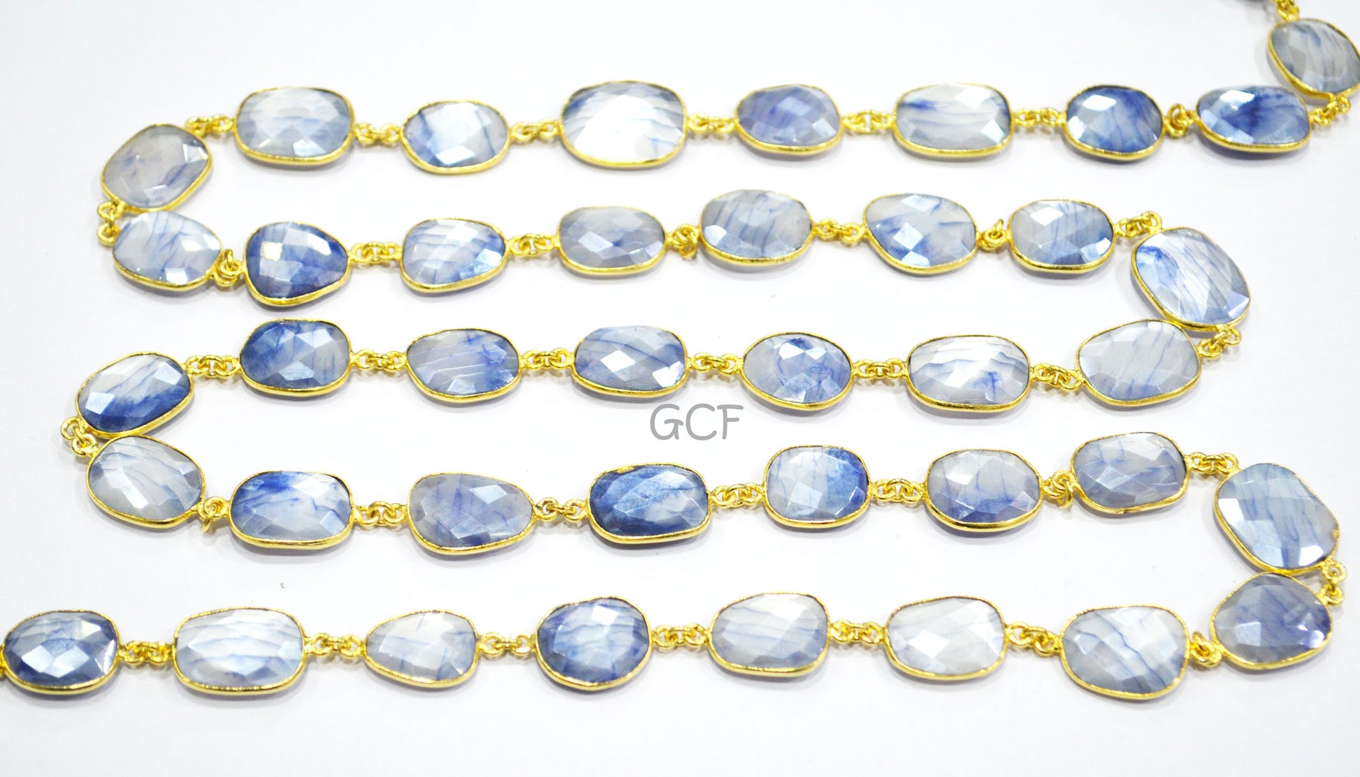 Silverstein Sapphire Color Moonstone Faceted Connector Chain,Sapphire Color Moonstone Free Form Chain,Sold By Foot,14x16 - 16x20 mm ,RB-6985