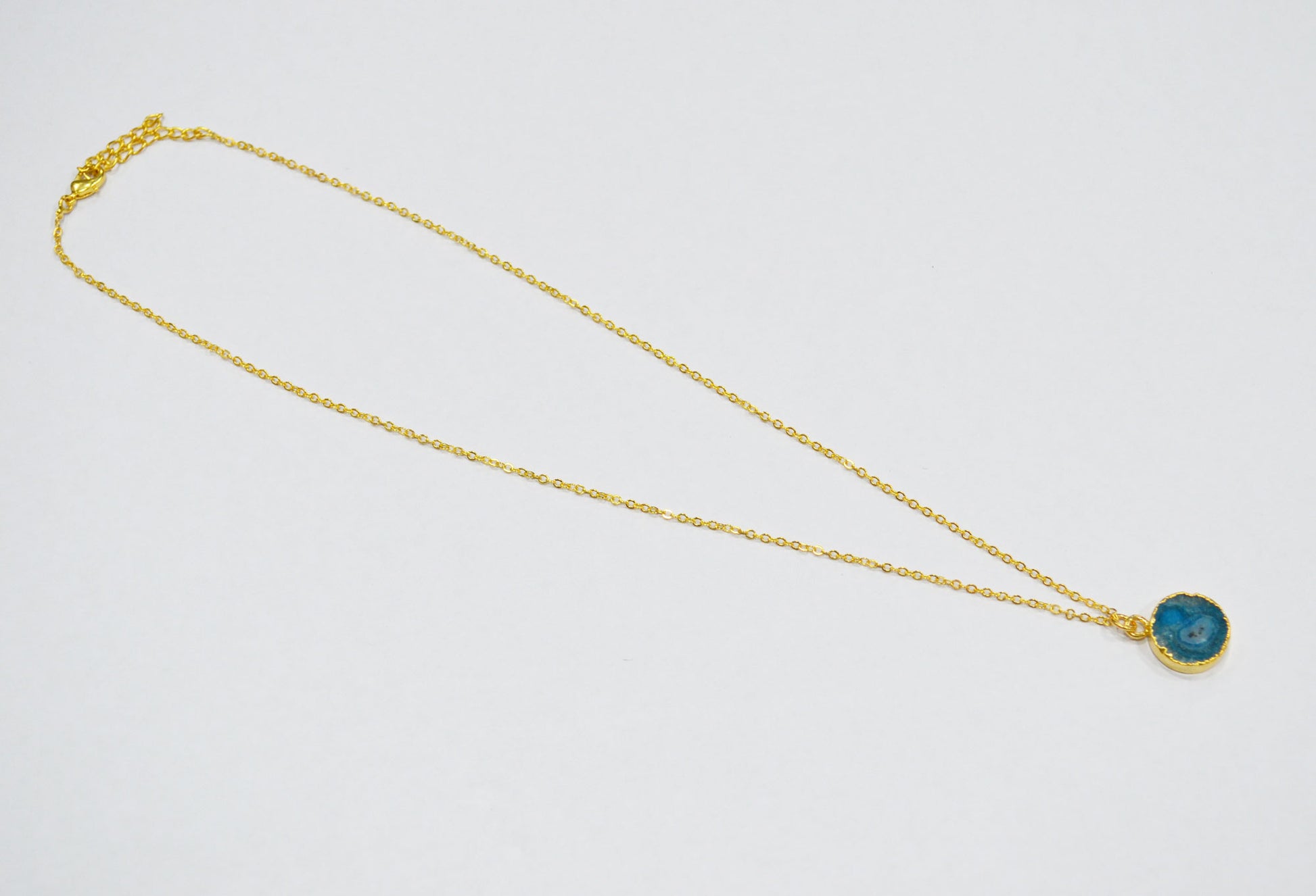 Sky Blue Solar Quartz Smooth Coin Shape Pendant With Adjustable Chain And Lobster Lock Necklace , 14 mm , RB-7321