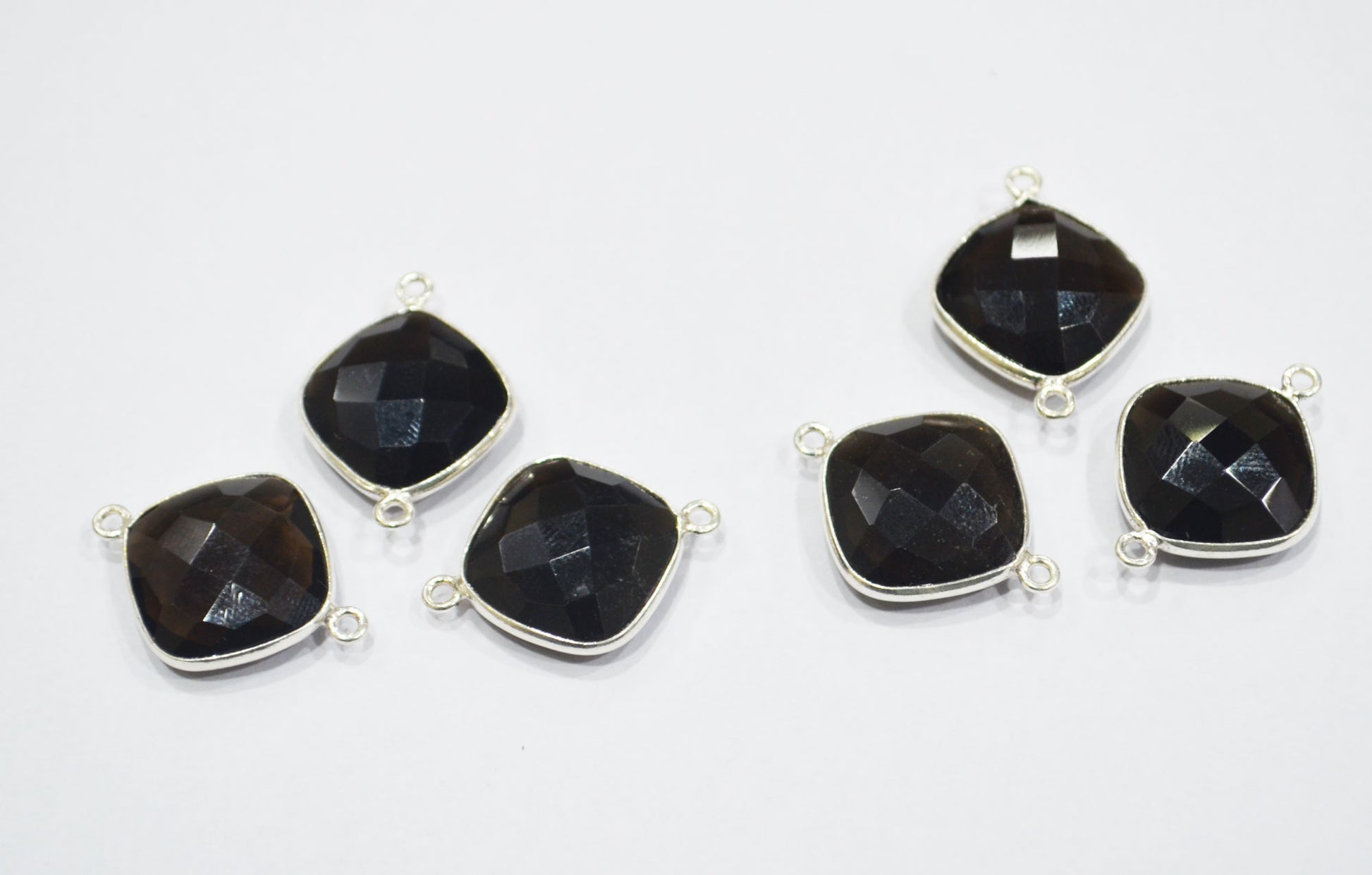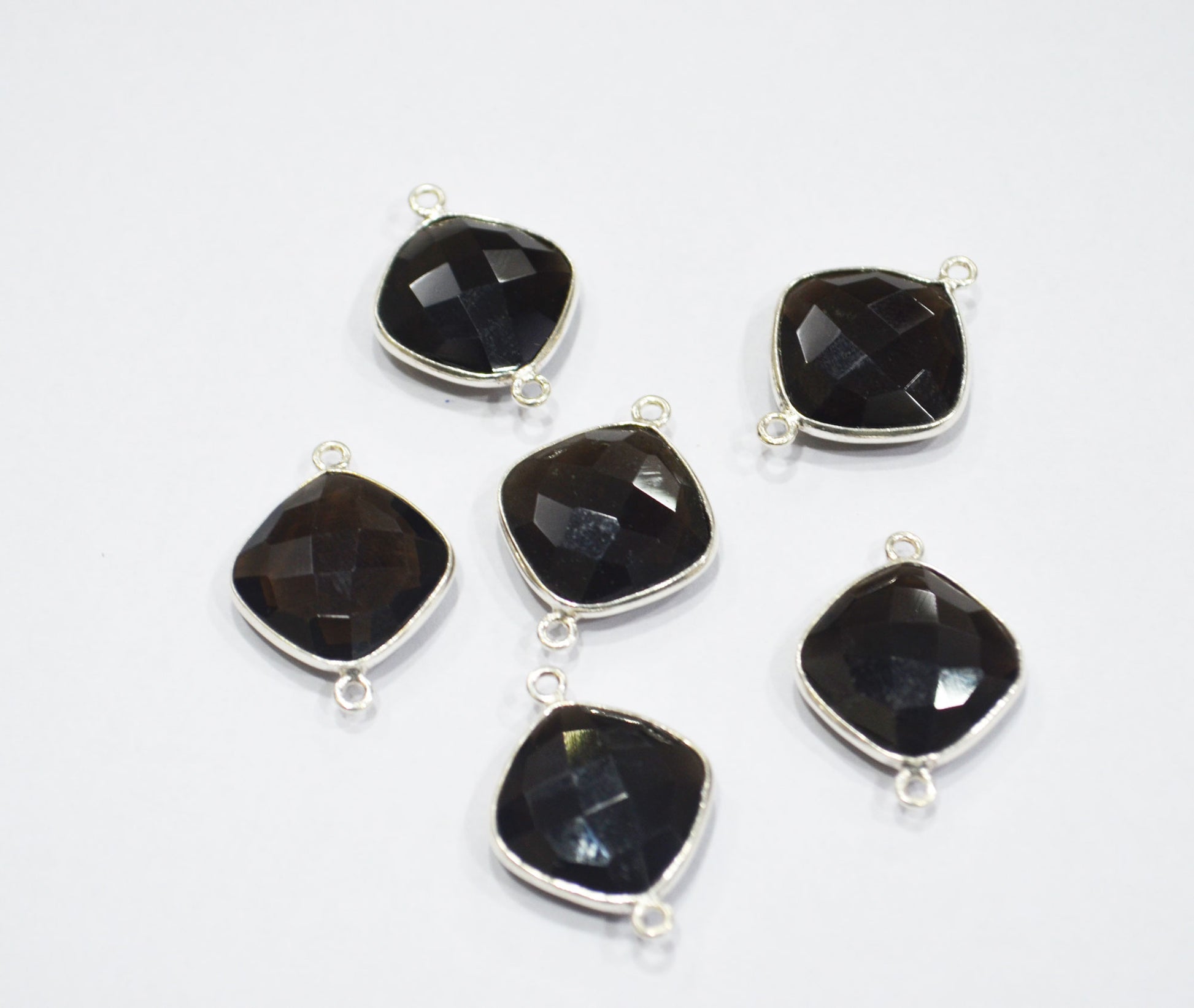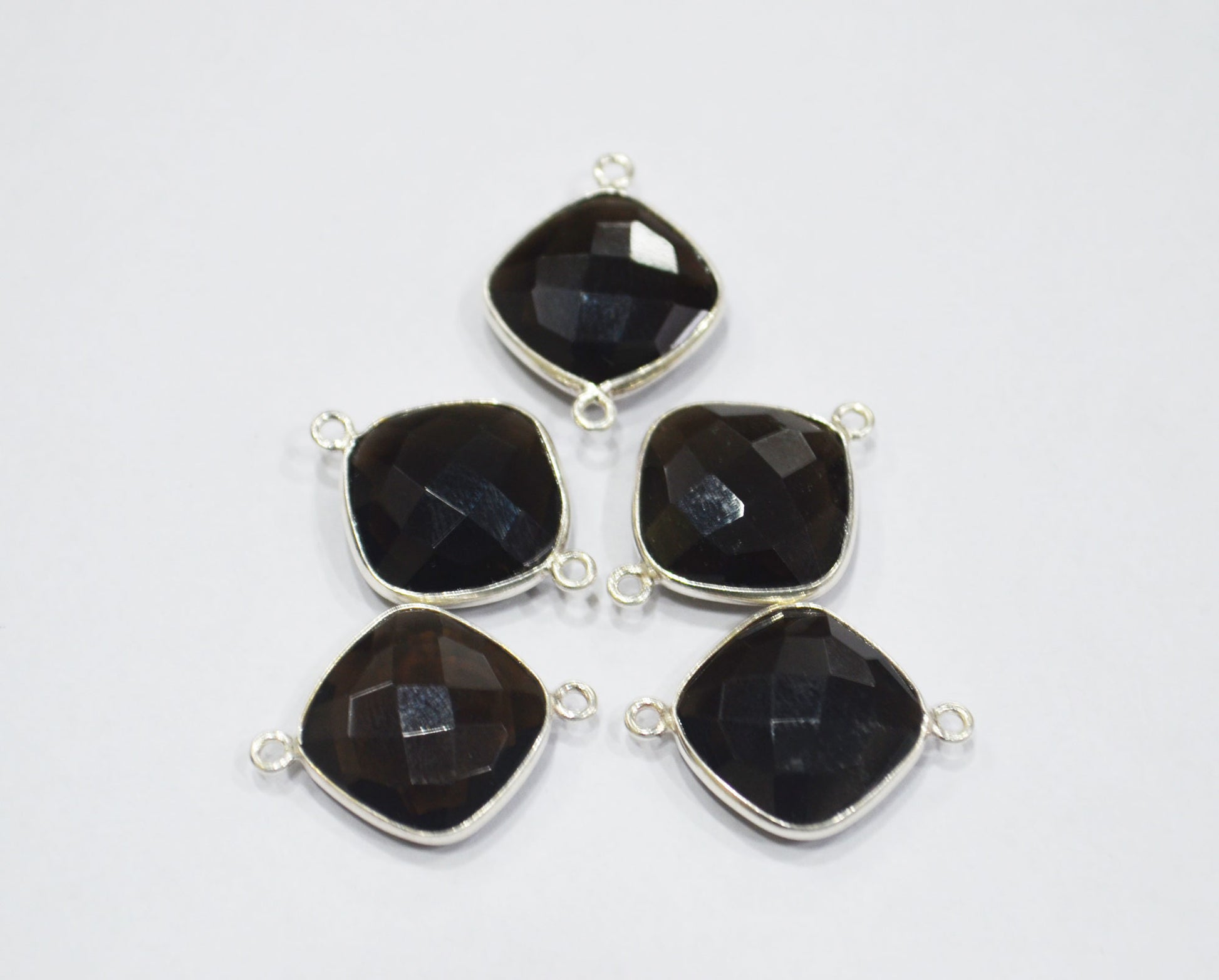 Smoky Faceted Cushion Shape Connector , Sold By Piece , 15 mm , RB-6411