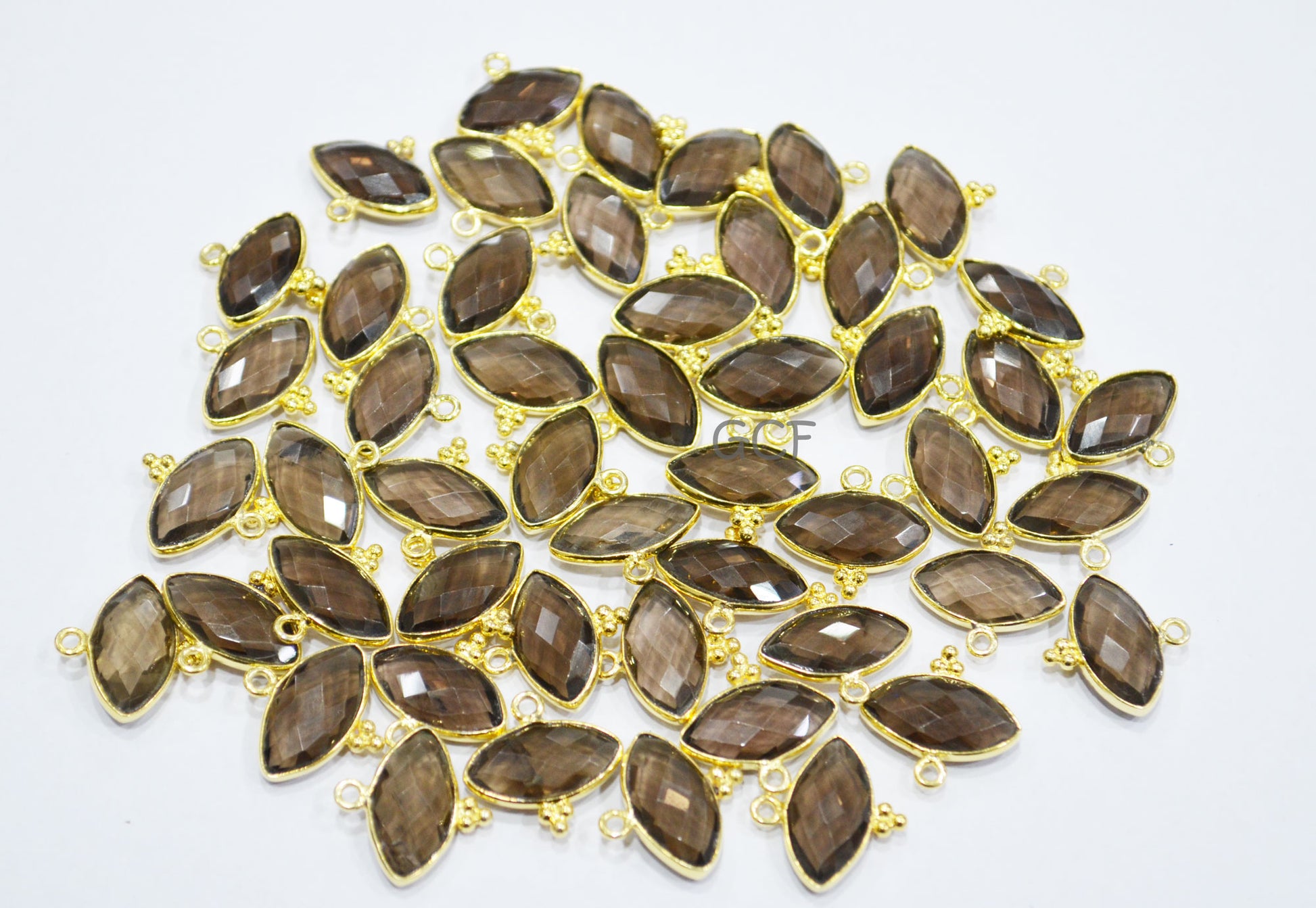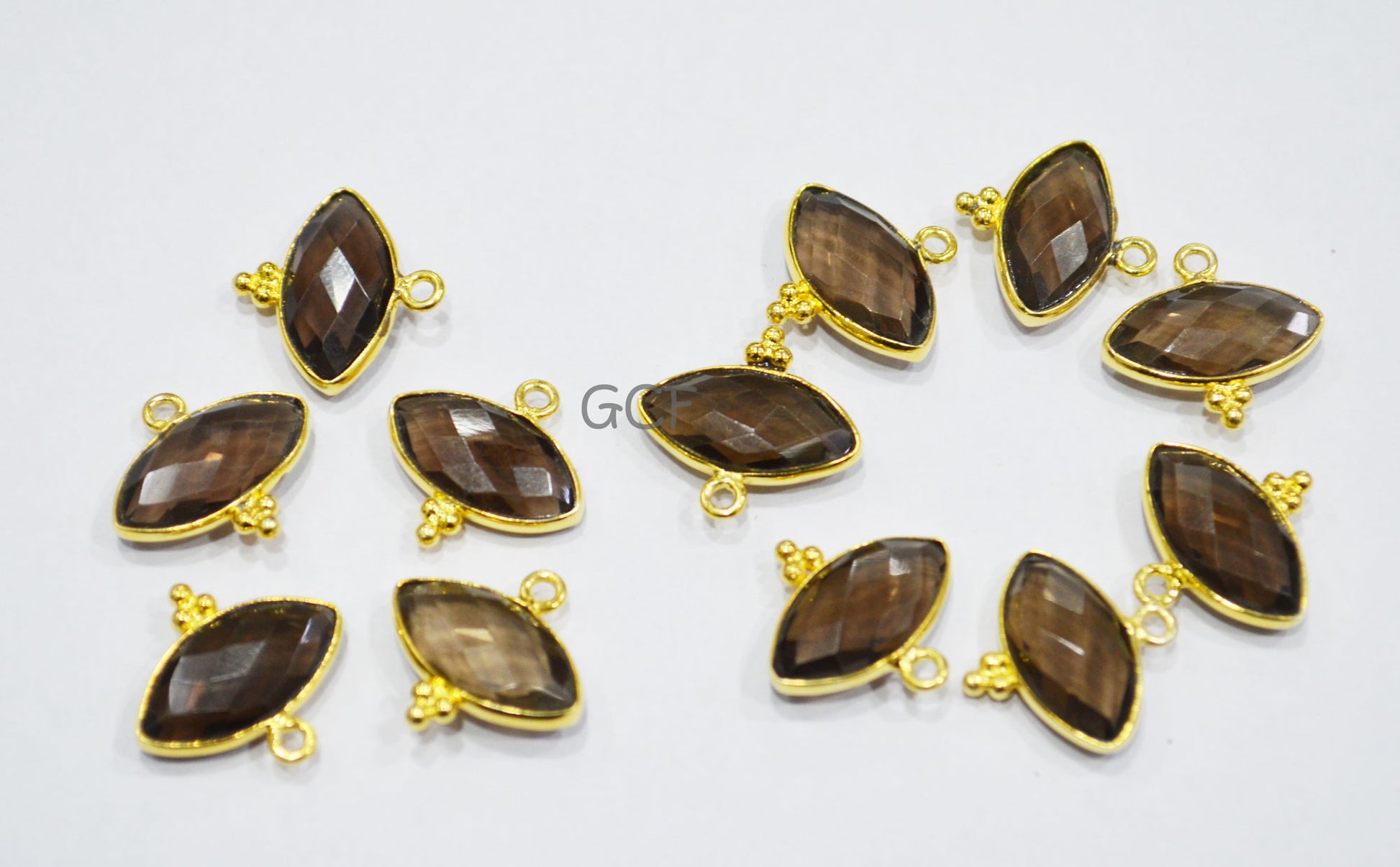 Smoky Faceted Marquise Shape Connector , Smoky Marquise Shape Single Bail Bezel Connector , Sold By Piece , 8x15 mm , RB-7061