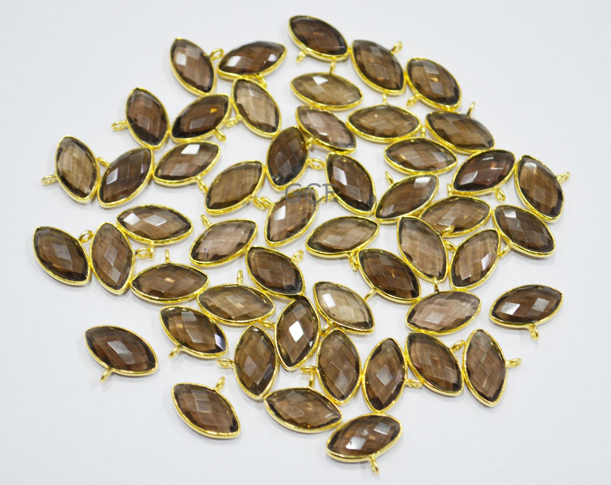 Smoky Faceted Marquise Shape Connector , Smoky Marquise Shape Single Bail Bezel Connector , Sold By Piece , 8x15 mm , RB-7062