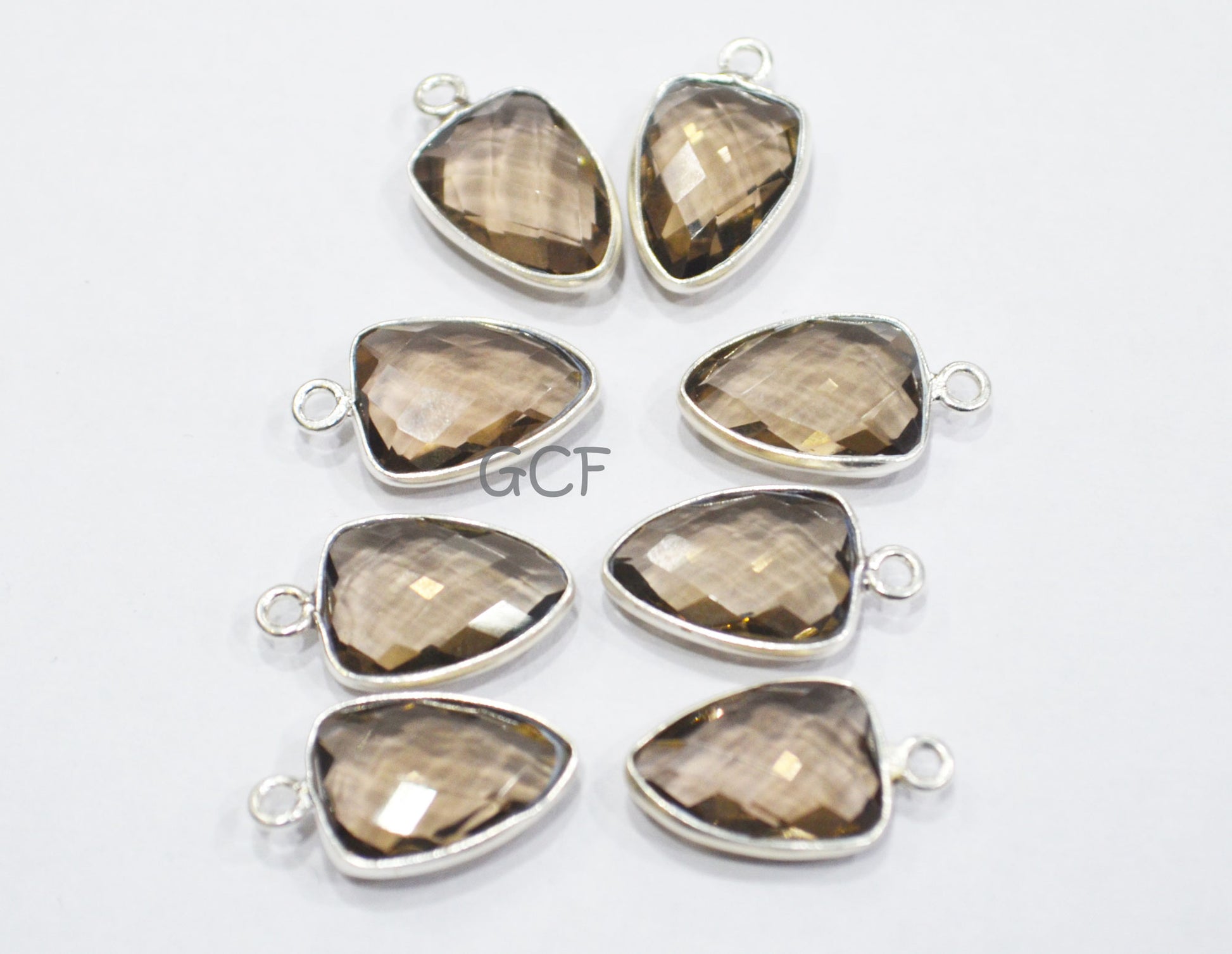 Smoky Hydro Glass Trillion Shape Single Bail Connector , Smoky Hydro Glass Faceted Connector , Sold By Piece , 10x14 mm , RB-6910