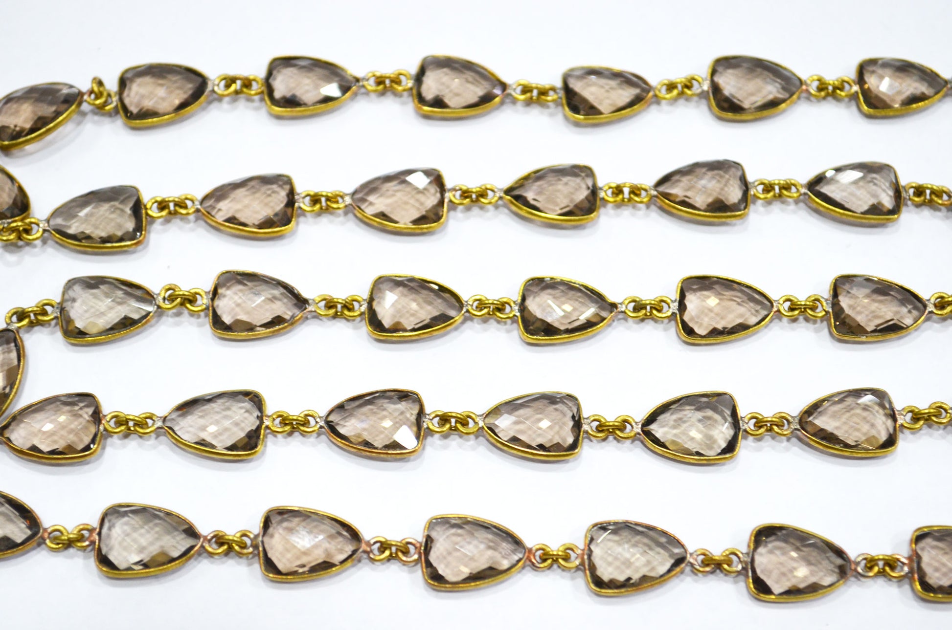 Smoky Hydro Quartz Faceted Trillion Shape Connector Chain , Smoky Hydro Quartz Bezel Link Chain , 10x13 mm , RB-5883