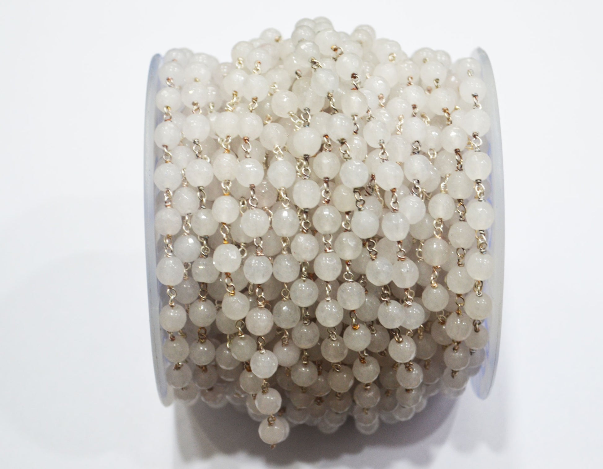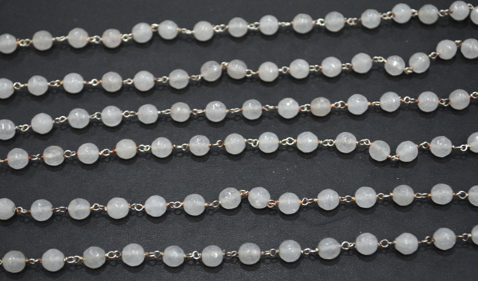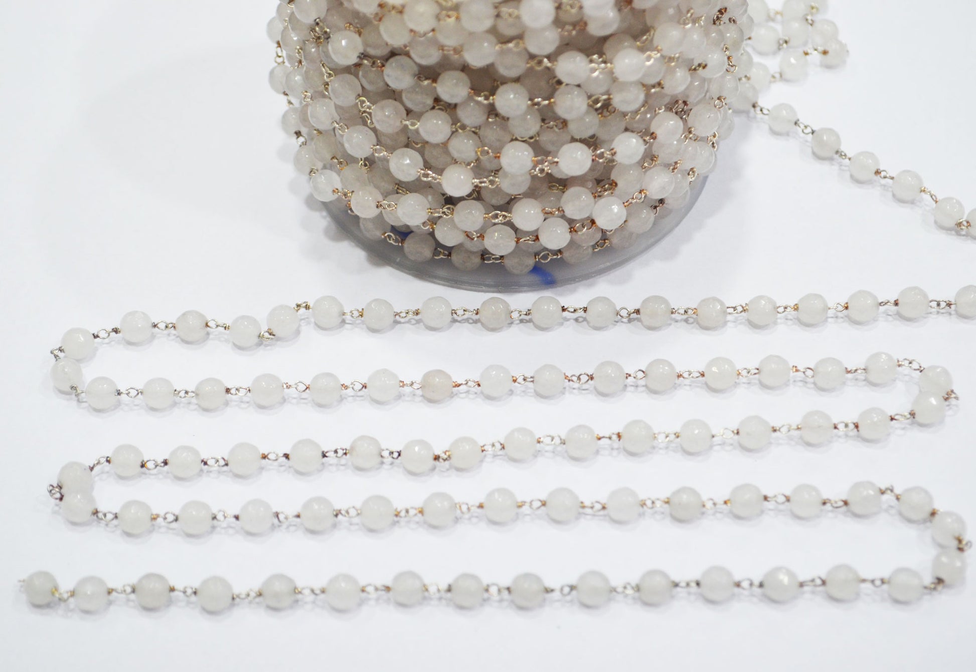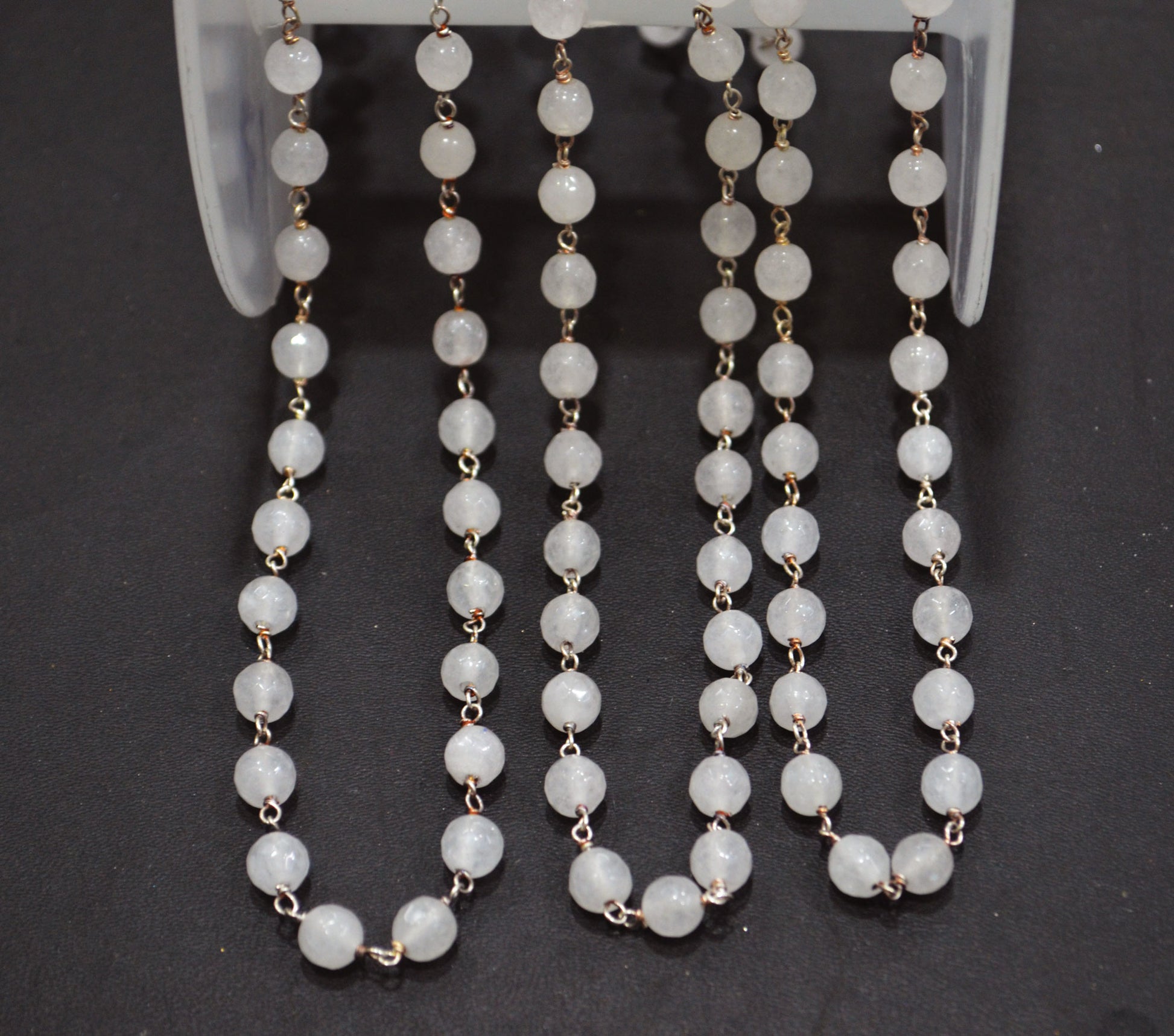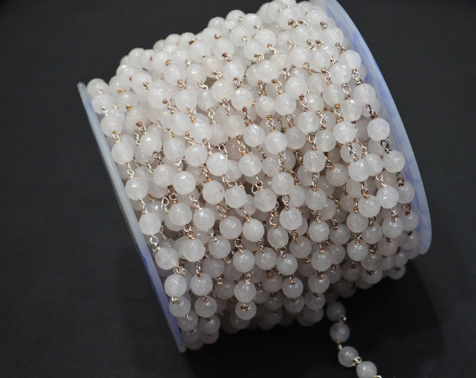 Snow Rose Jade Faceted Round Shape Rosary Beaded Chain , Snow Rose Jade Wire Wrapped Chain , 6 - 6.50 mm , RB-6305