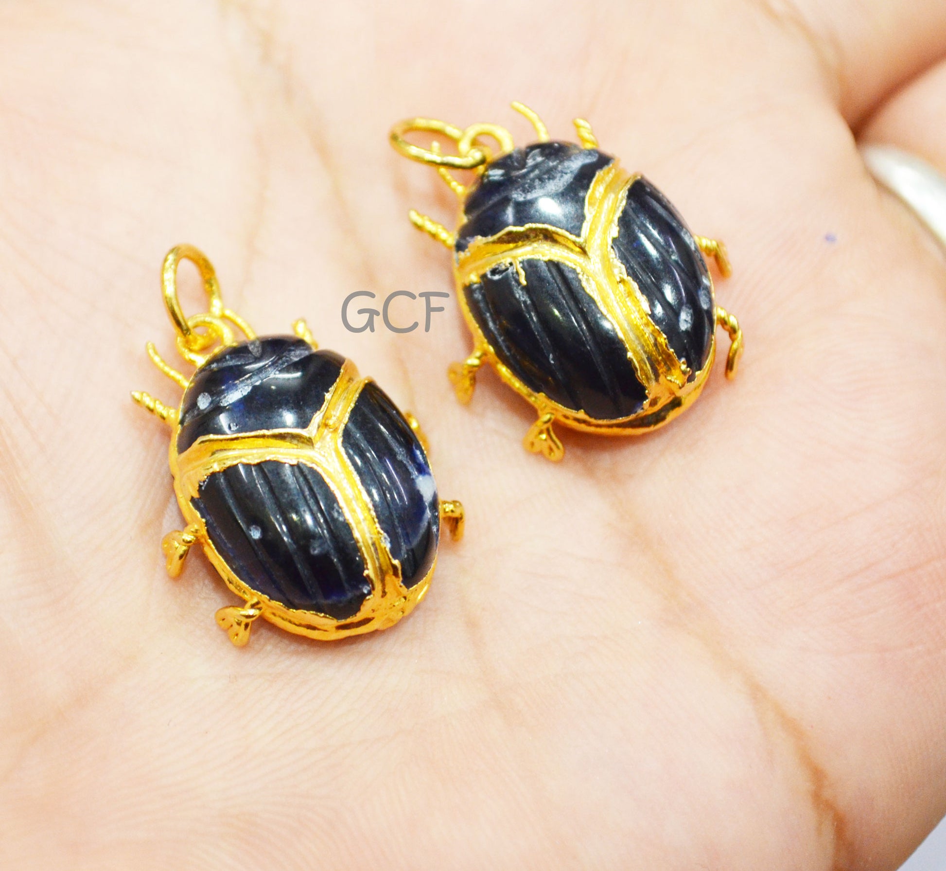 Sodalite Electroplated Beetle Pendant , Egyptian Scarab Sodalite Charm , Sold By Piece , Use To Make Jewelry , 2 - 2.50 cm , 31345