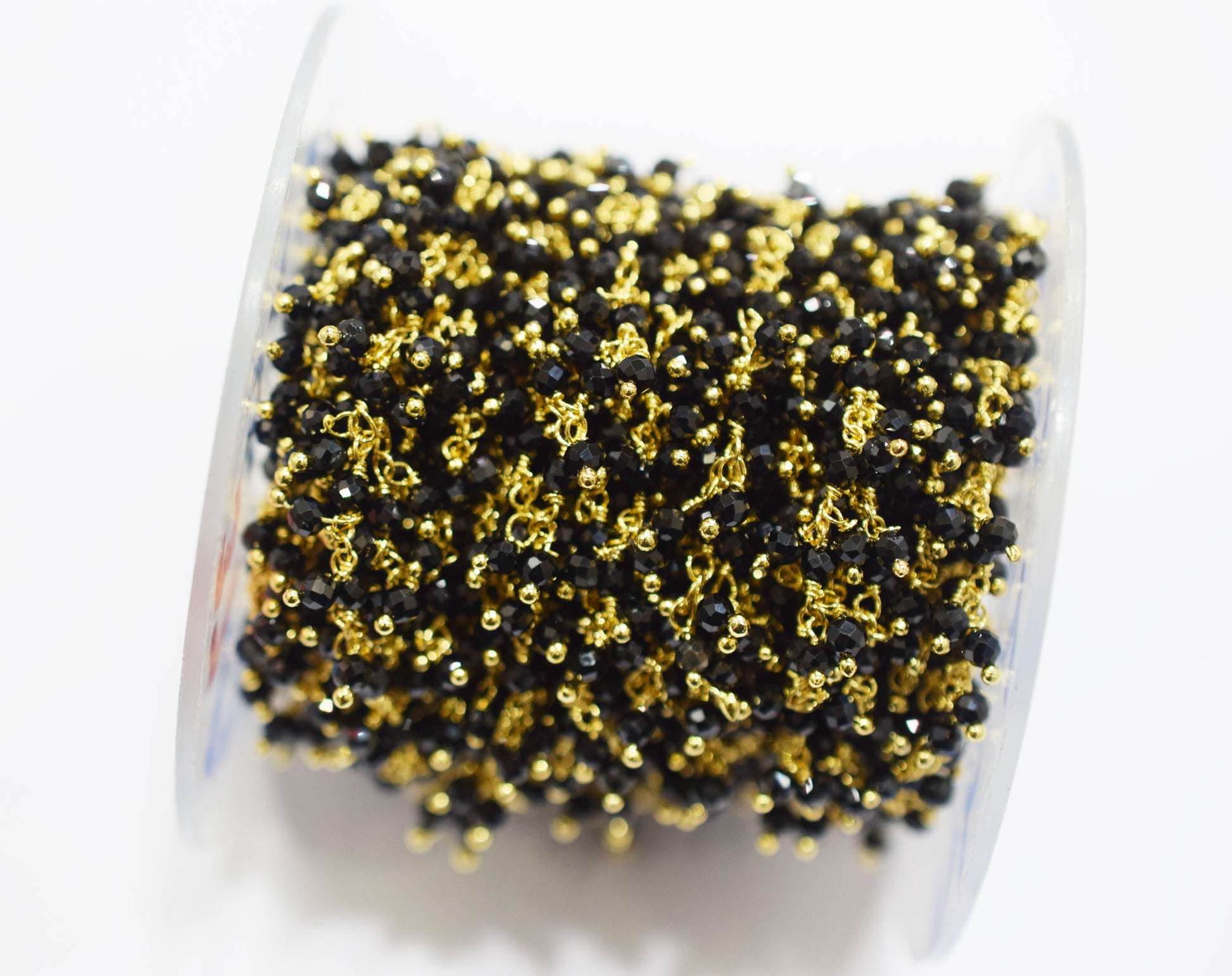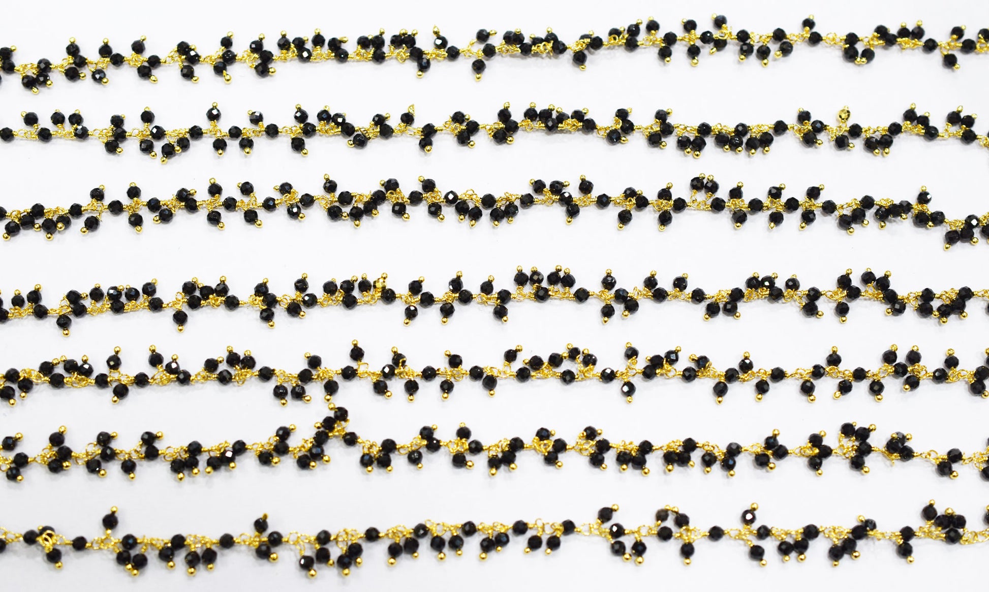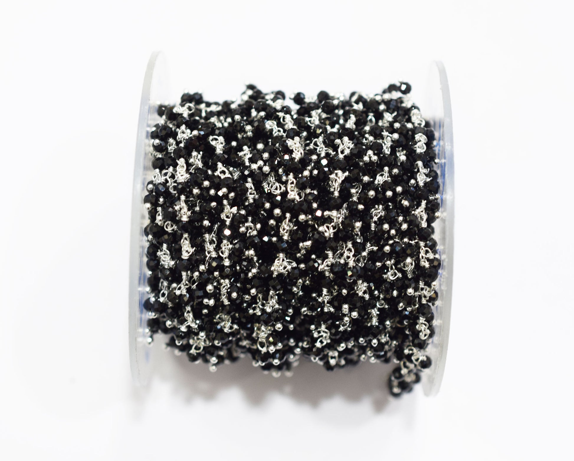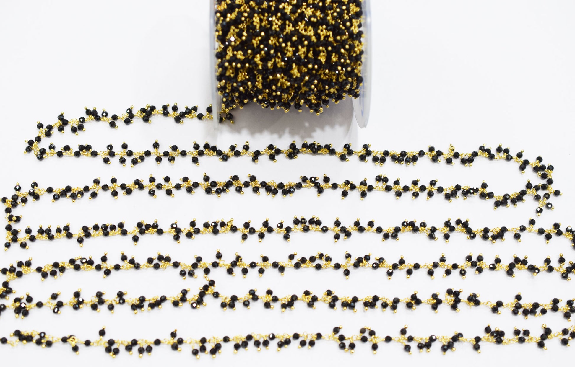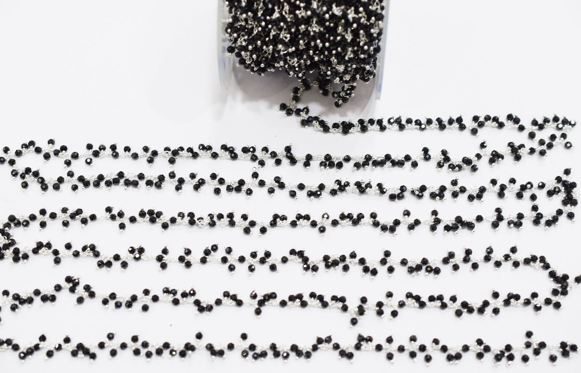 Sparkling Black Spinel Hydro Quartz Faceted Round Shape Dangling Chain , Black Spinel Angoori Cluster Chain , 3 mm , RB-6672Β