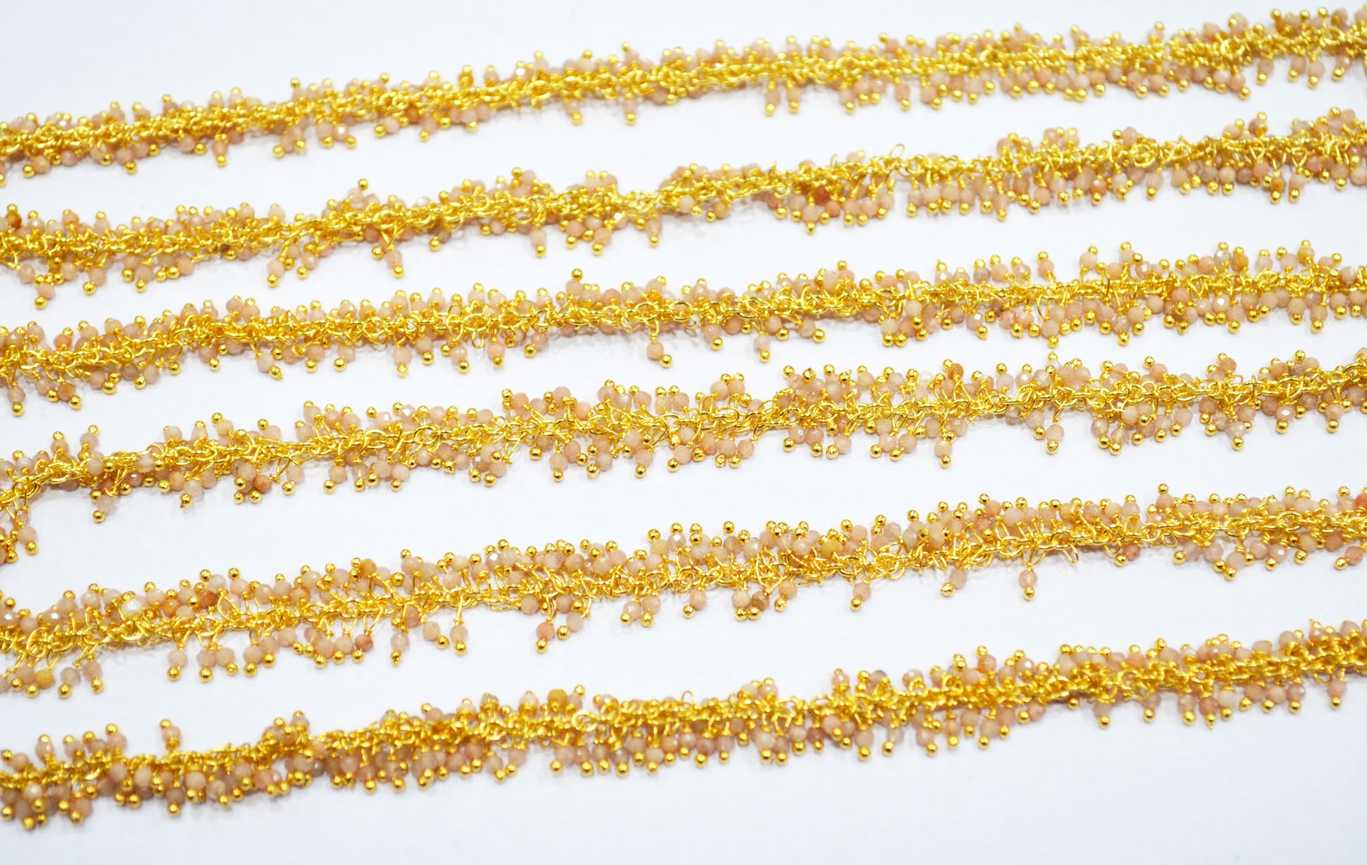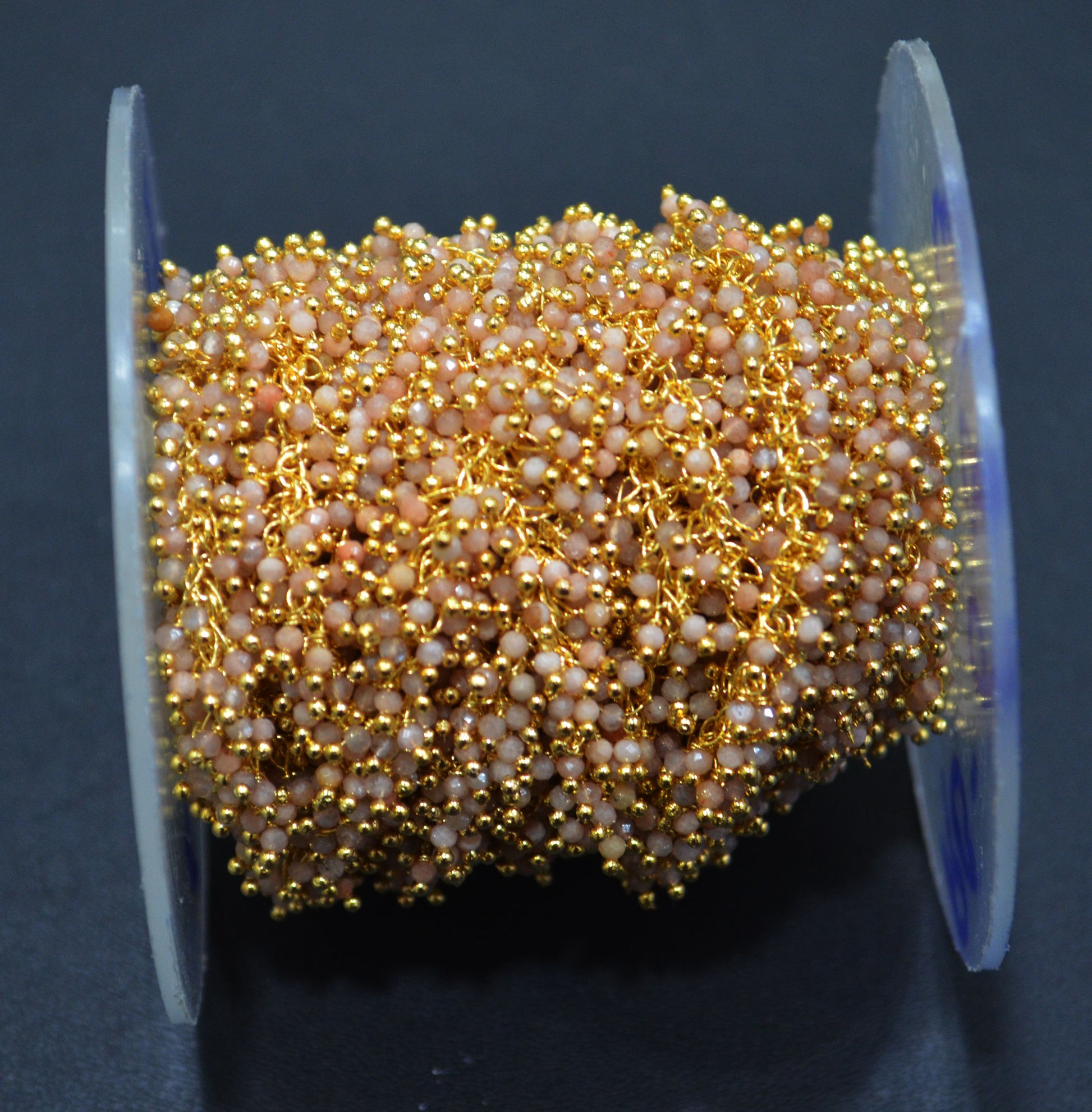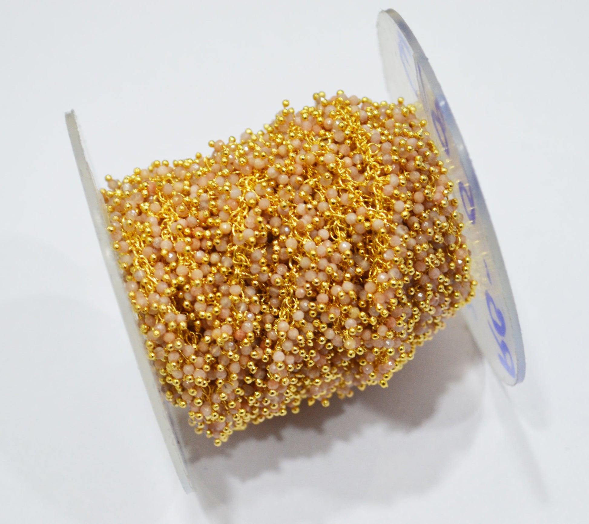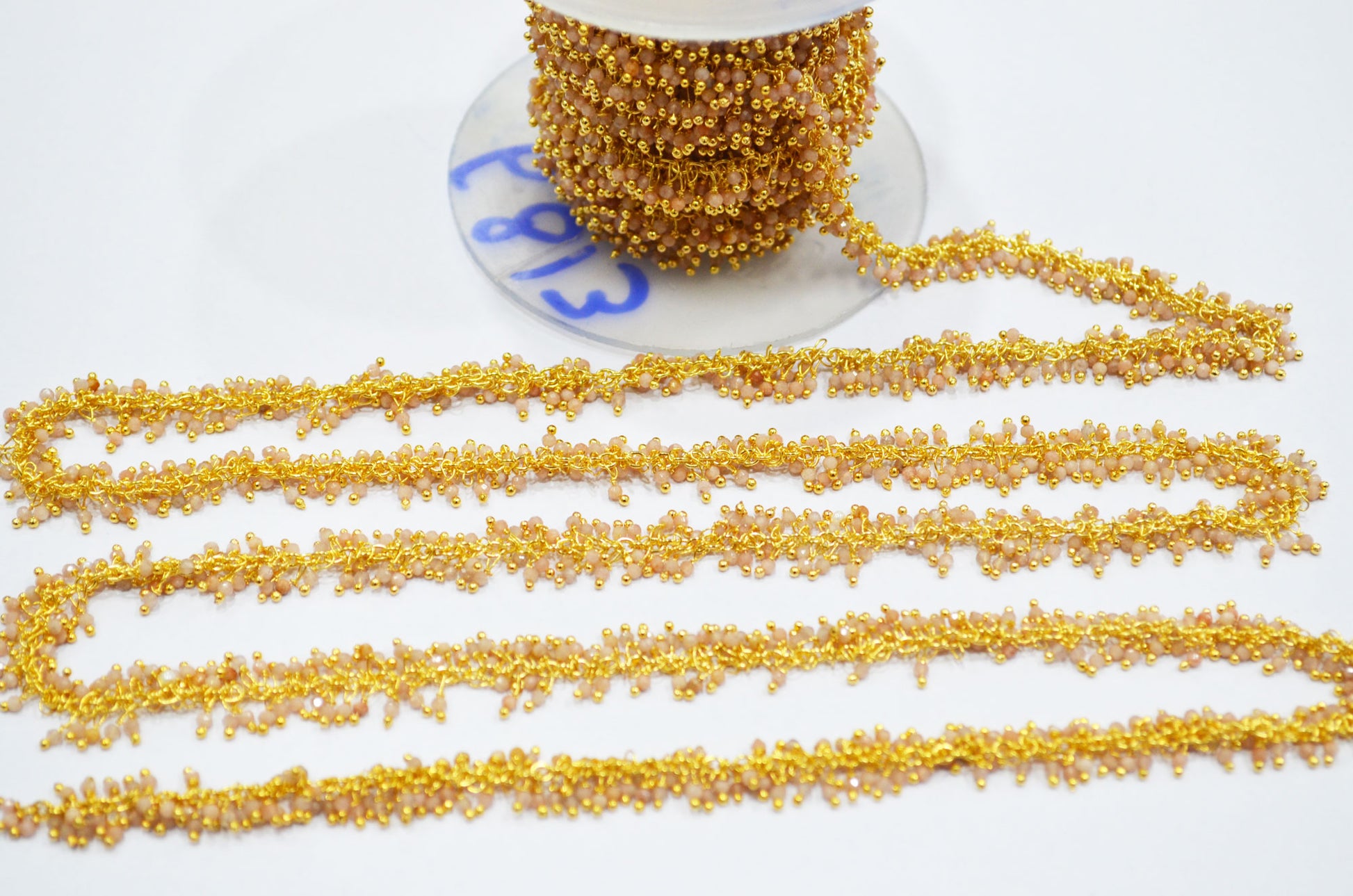 Sunstone Faceted Round Shape Rosary Beaded Grape Chain , Sunstone Angoori Cluster Wire Wrapped Chain , 2 mm , 6813