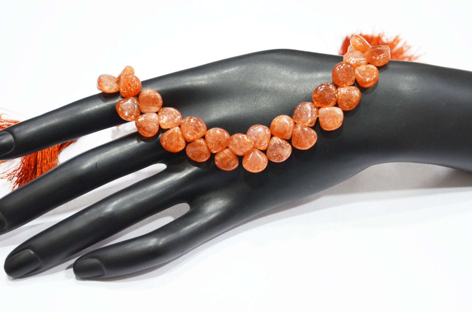 Natural Sunstone Smooth Heart Shape Beads , Sunstone Heart Shape Briolettes , Sold By Strand , 8 Inches , 9x9 - 10x10 mm , 19336