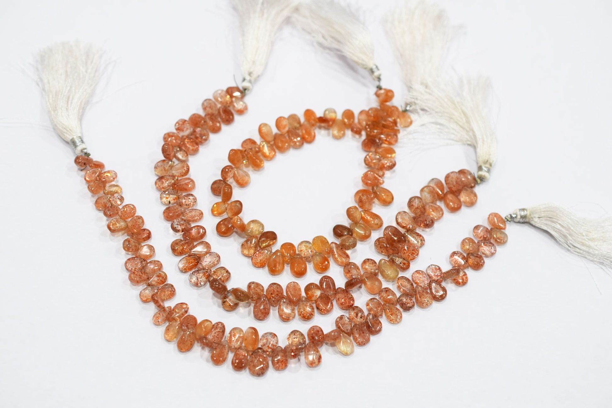 Sunstone Smooth Pear Shape Smooth Briolettes , Sold By Strand , 5x7 - 6.50x10 mm , 8", 17566