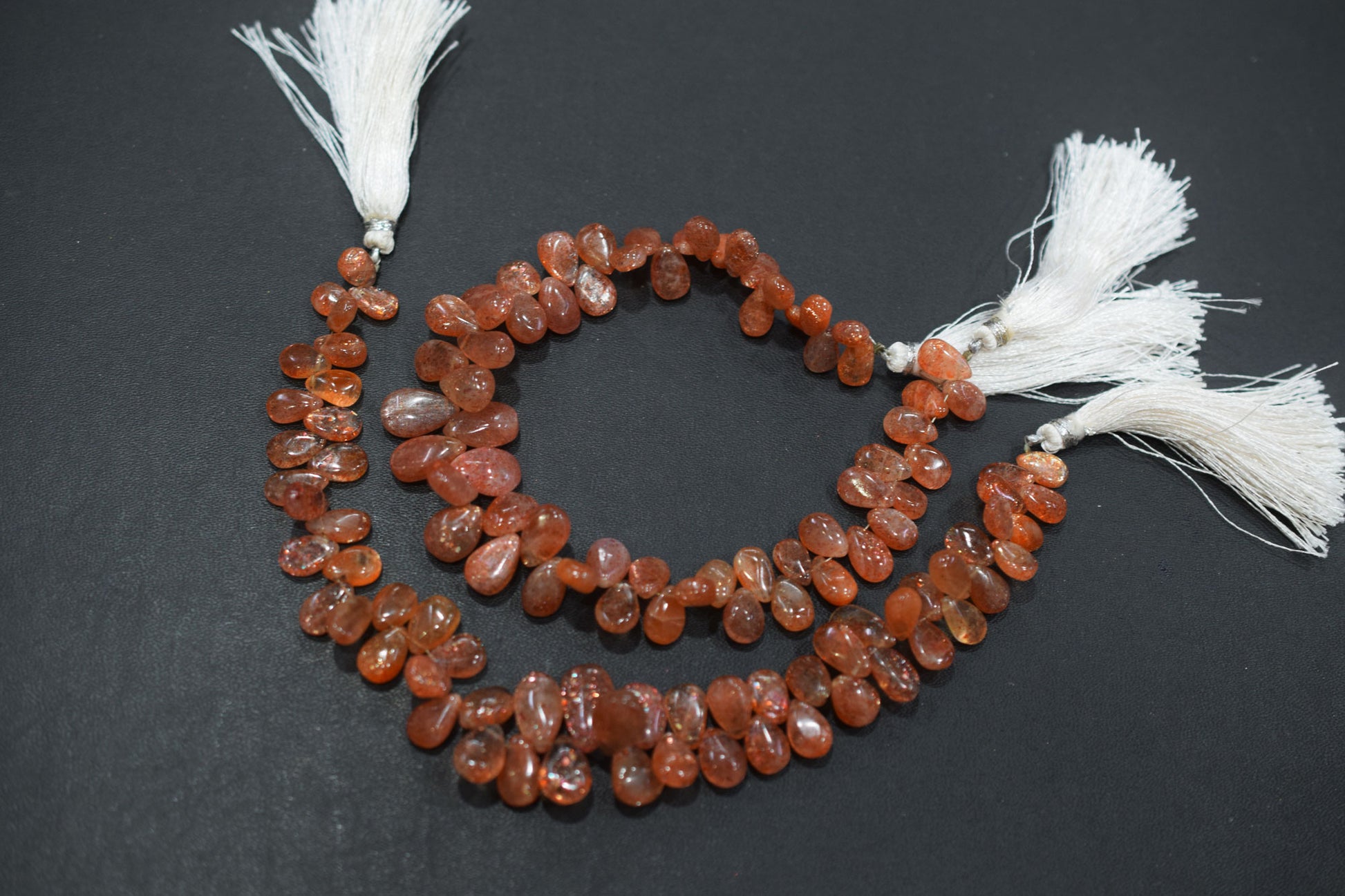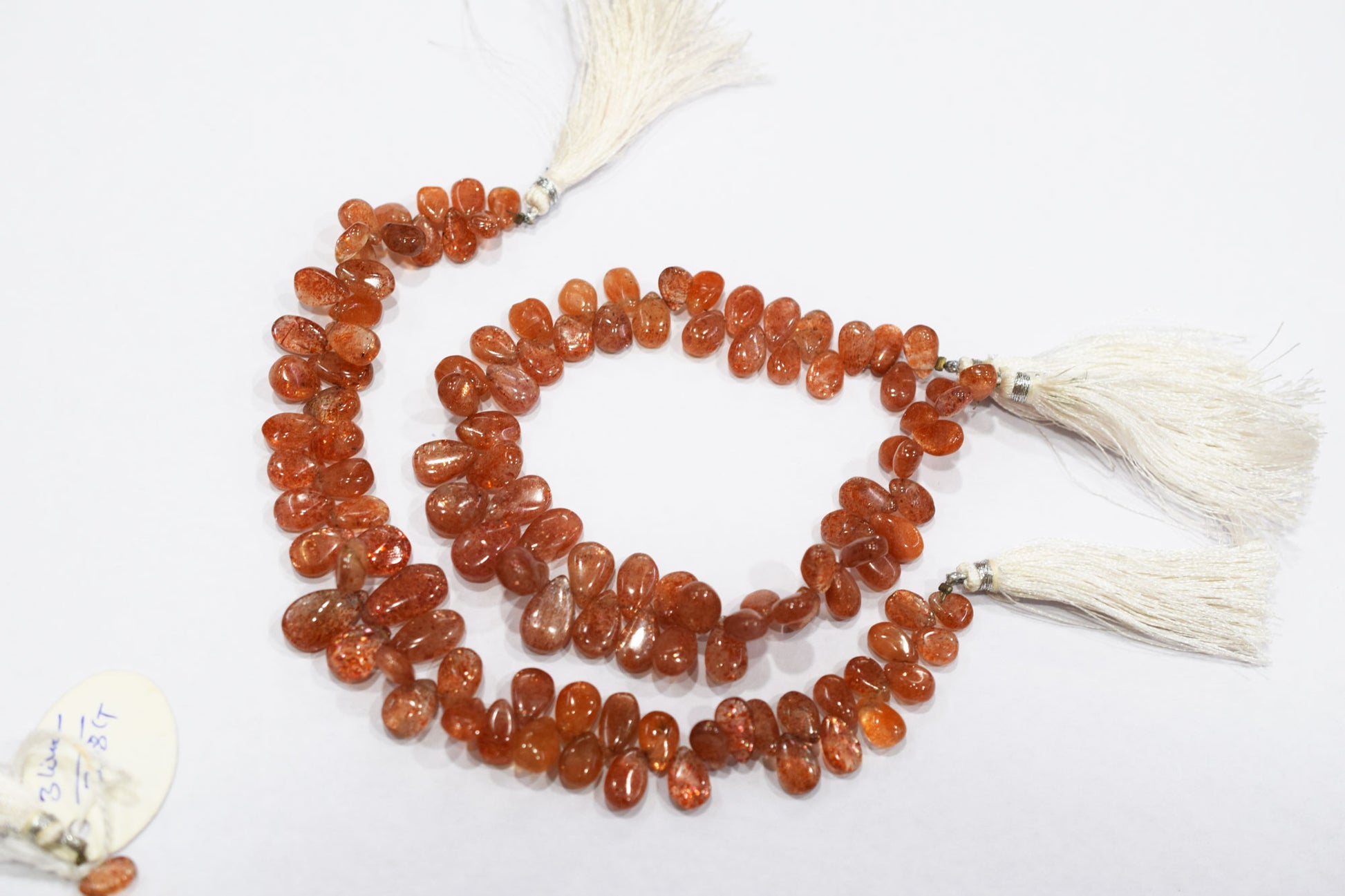 Sunstone Smooth Pear Shape Smooth Briolettes , Sold By Strand , 5x7 - 8x12 mm , 8" , 17567