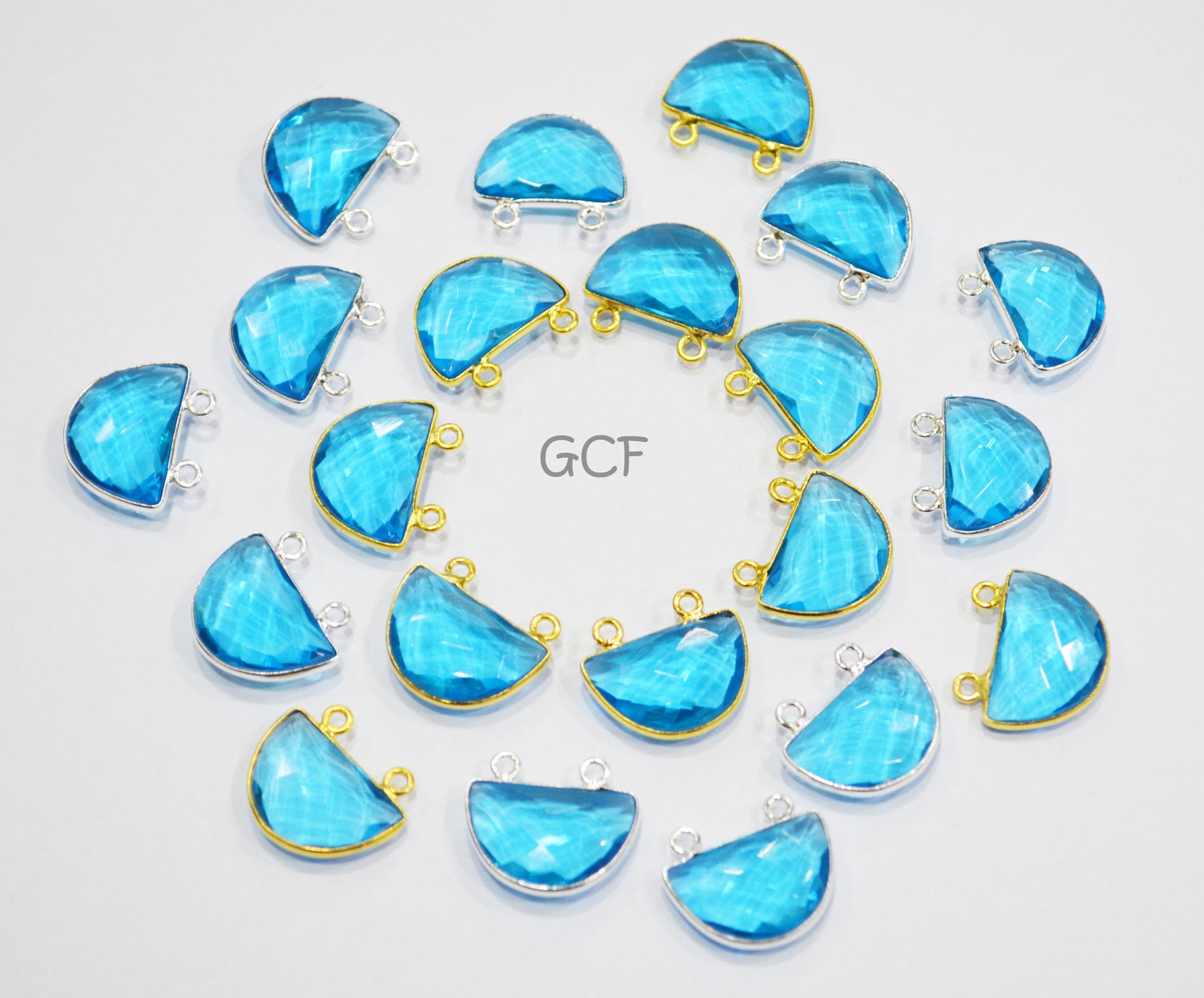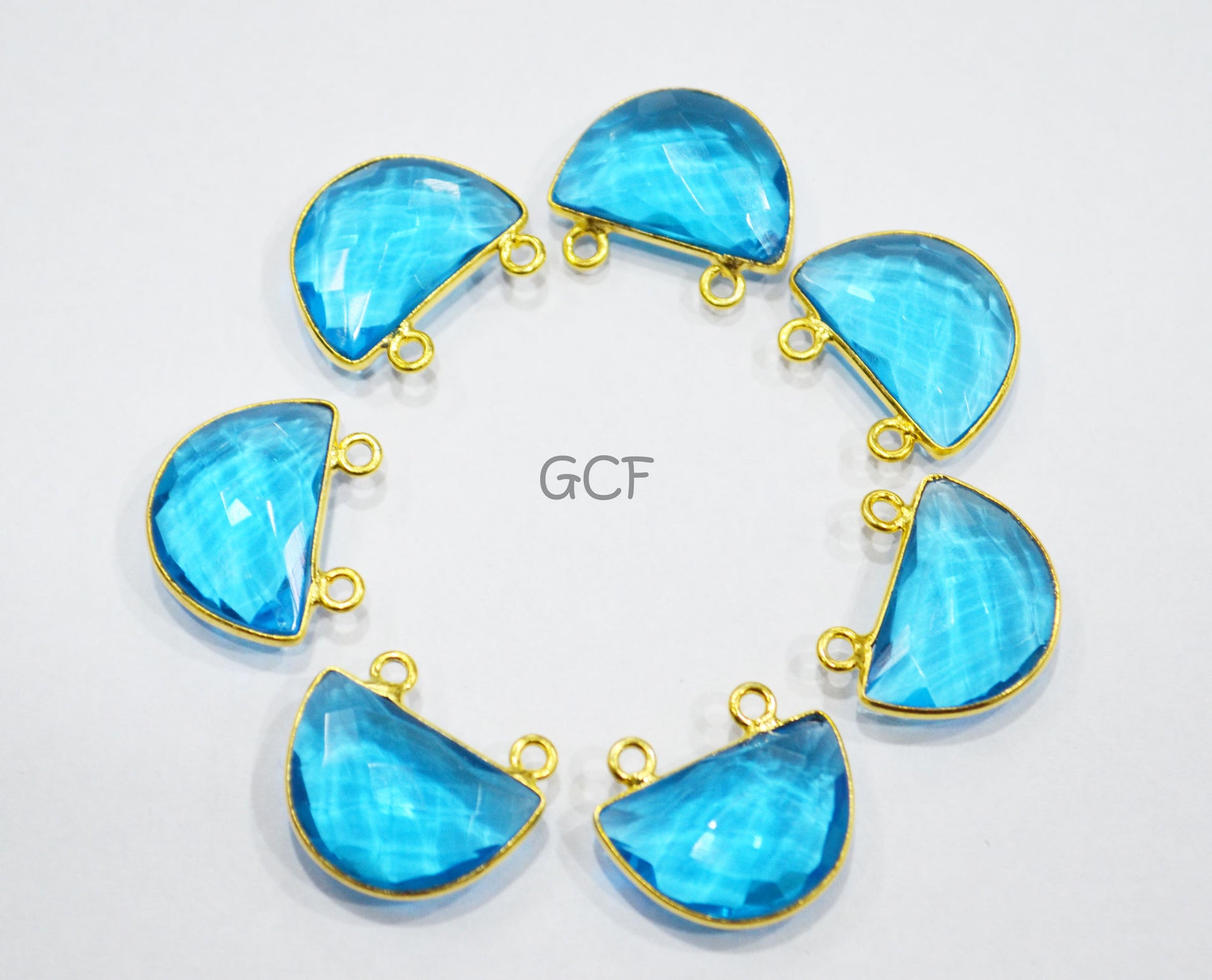 Swiss Blue Hydro Quartz Faceted Half Moon Shape Connector ,Swiss Blue Hydro Glass Double Bail Connector , Sold By Piece , 13x19 mm , RB-7091