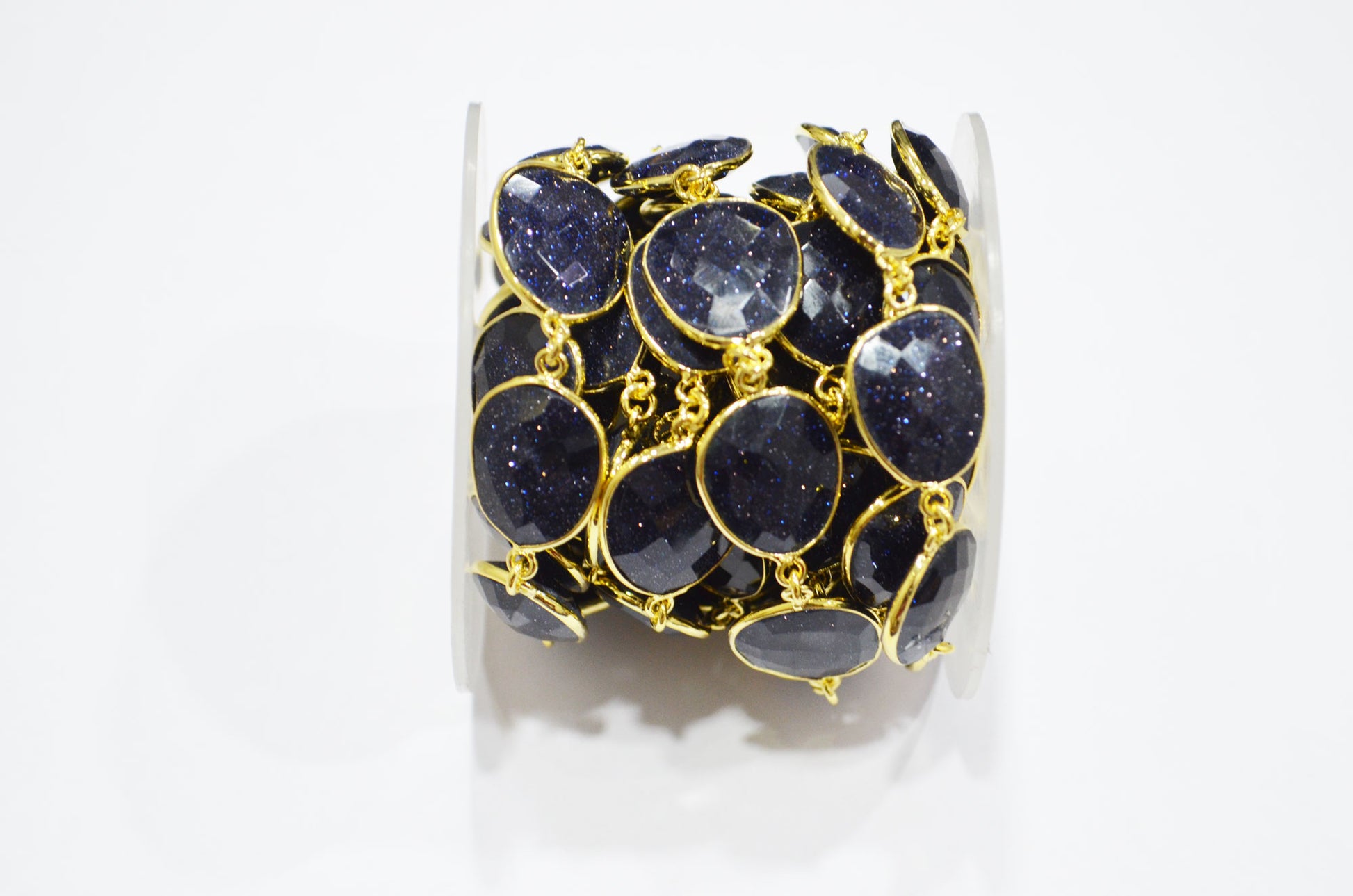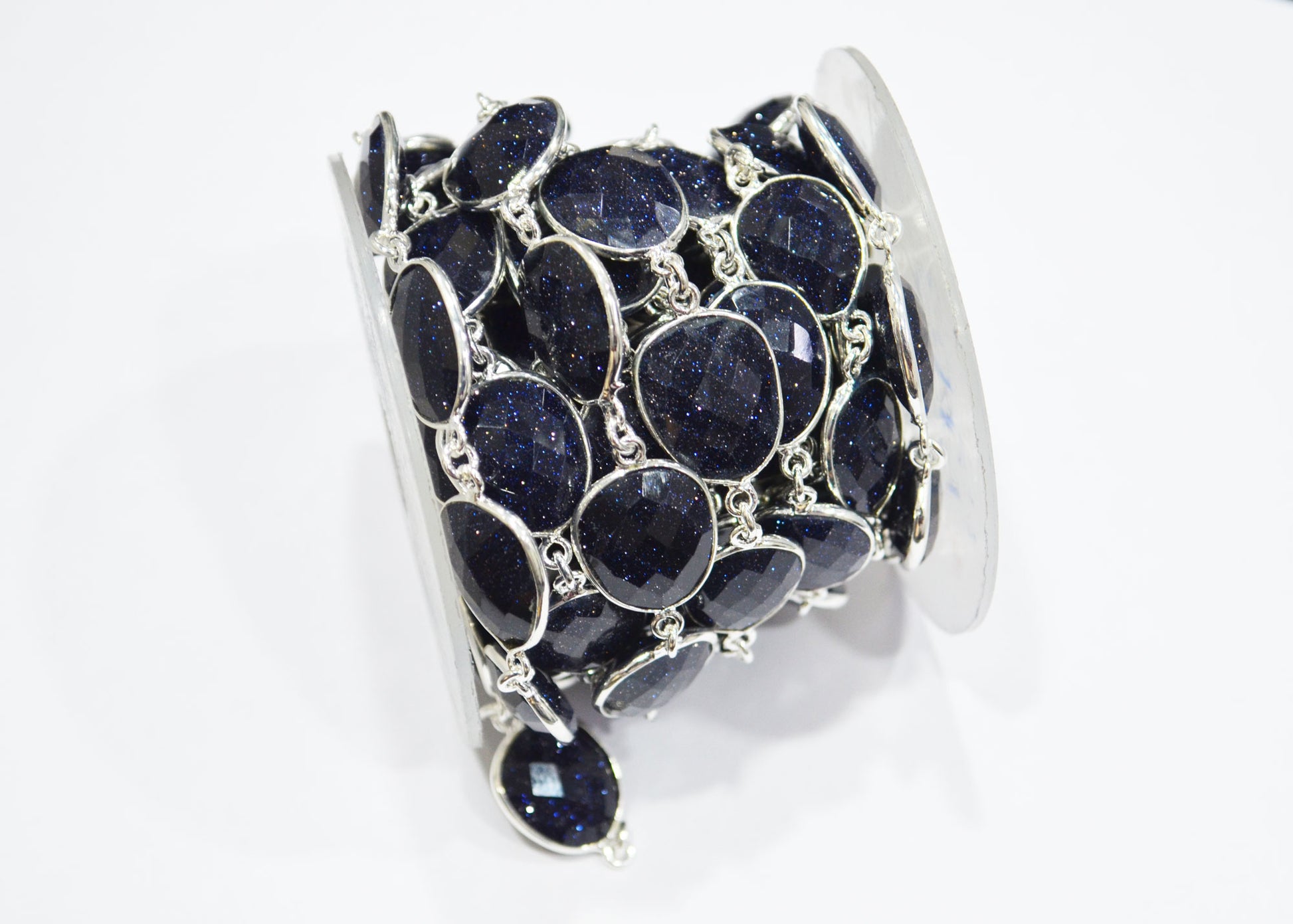 Synthetic Blue Sunstone Faceted Slice Shape Connector Chain , Synthetic Blue Sunstone Bezel Link Chain , 11x14 - 18x21 mm , RB-7378