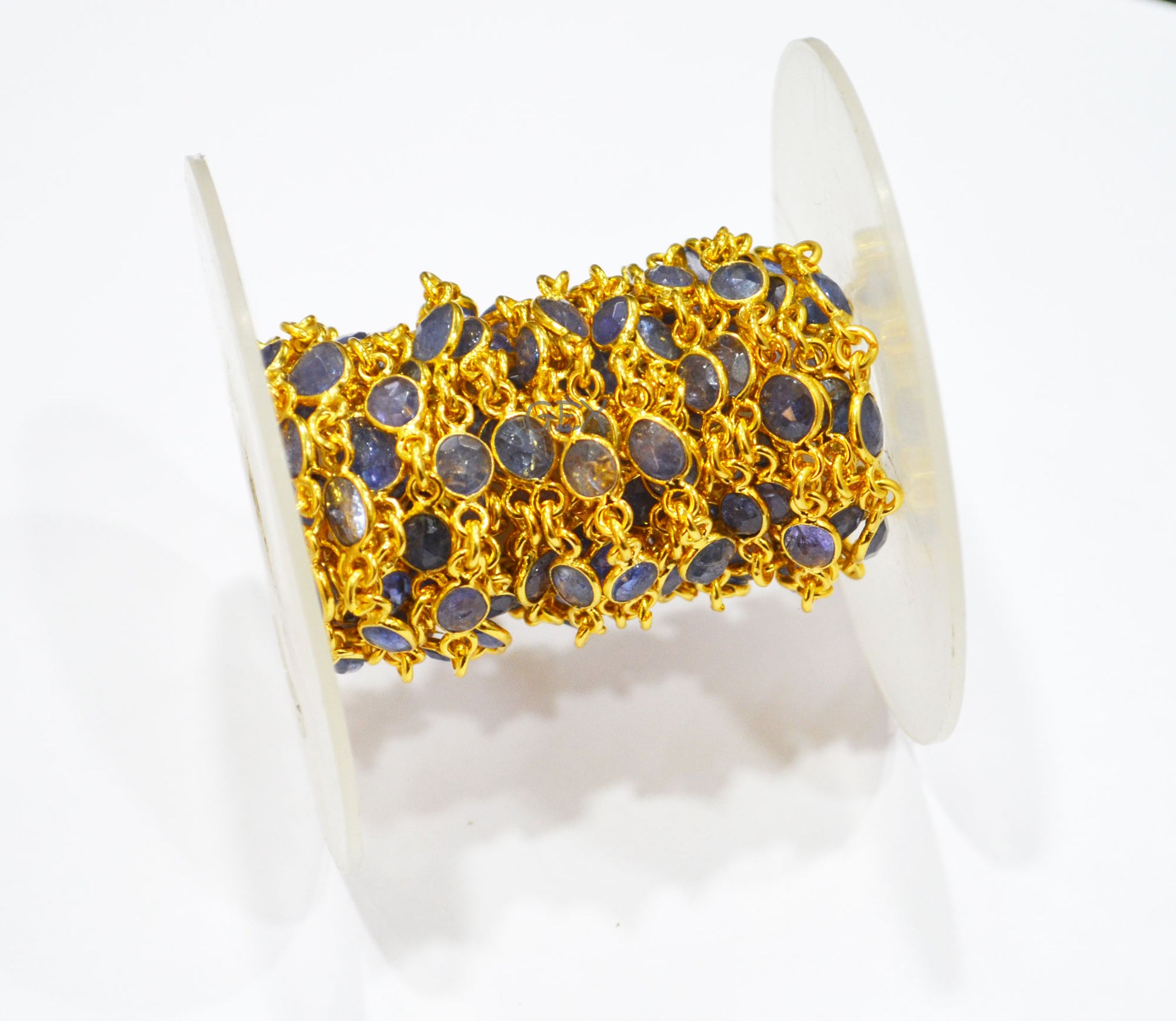 Tanzanite Faceted Slice Shape Connector Chain , Tanzanite Free Form Shape Bezel Link Chain , 4x5 - 6x8 mm , RB-7297