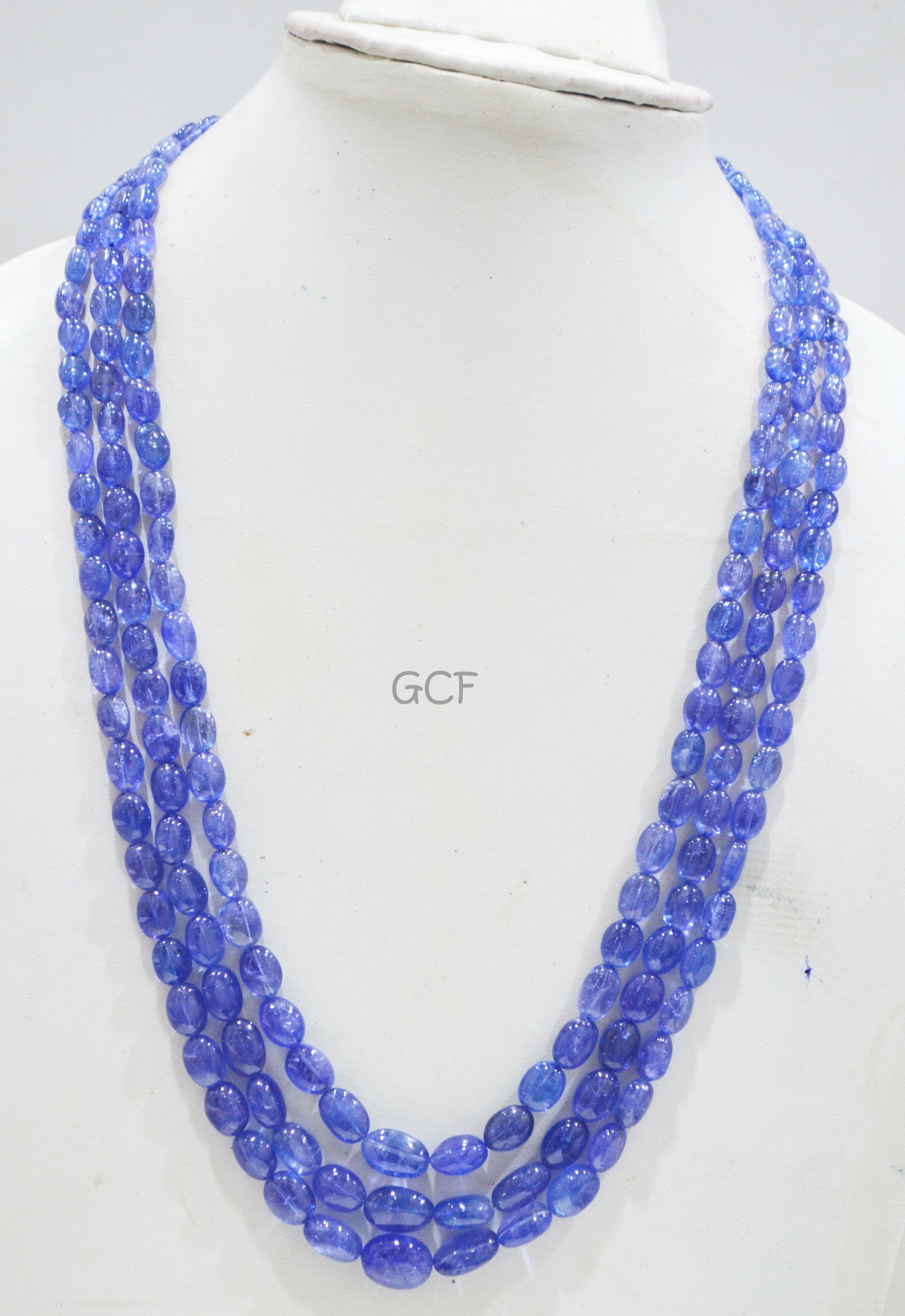 Tanzanite Smooth Oval Nuggets Shape Necklace,Tanzanite 3 Line Necklace 20 - 22 Inches Long With Adjustable Tussle ,5x6.5 - 10.5x13 mm ,31479