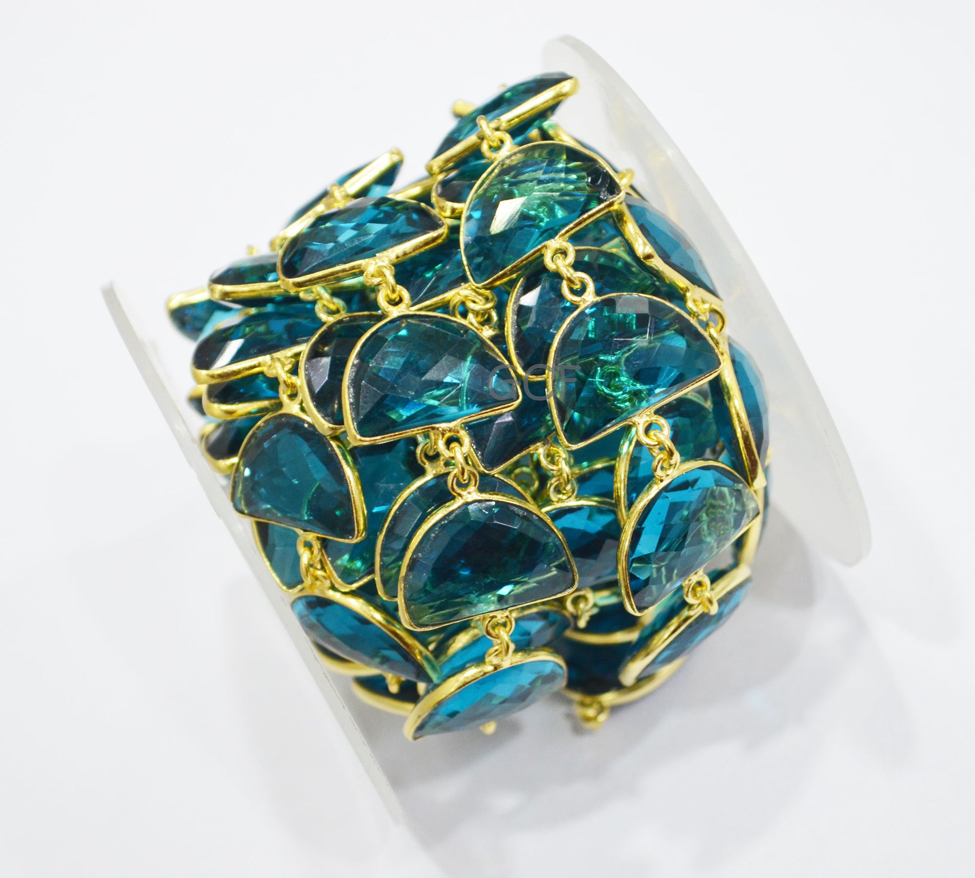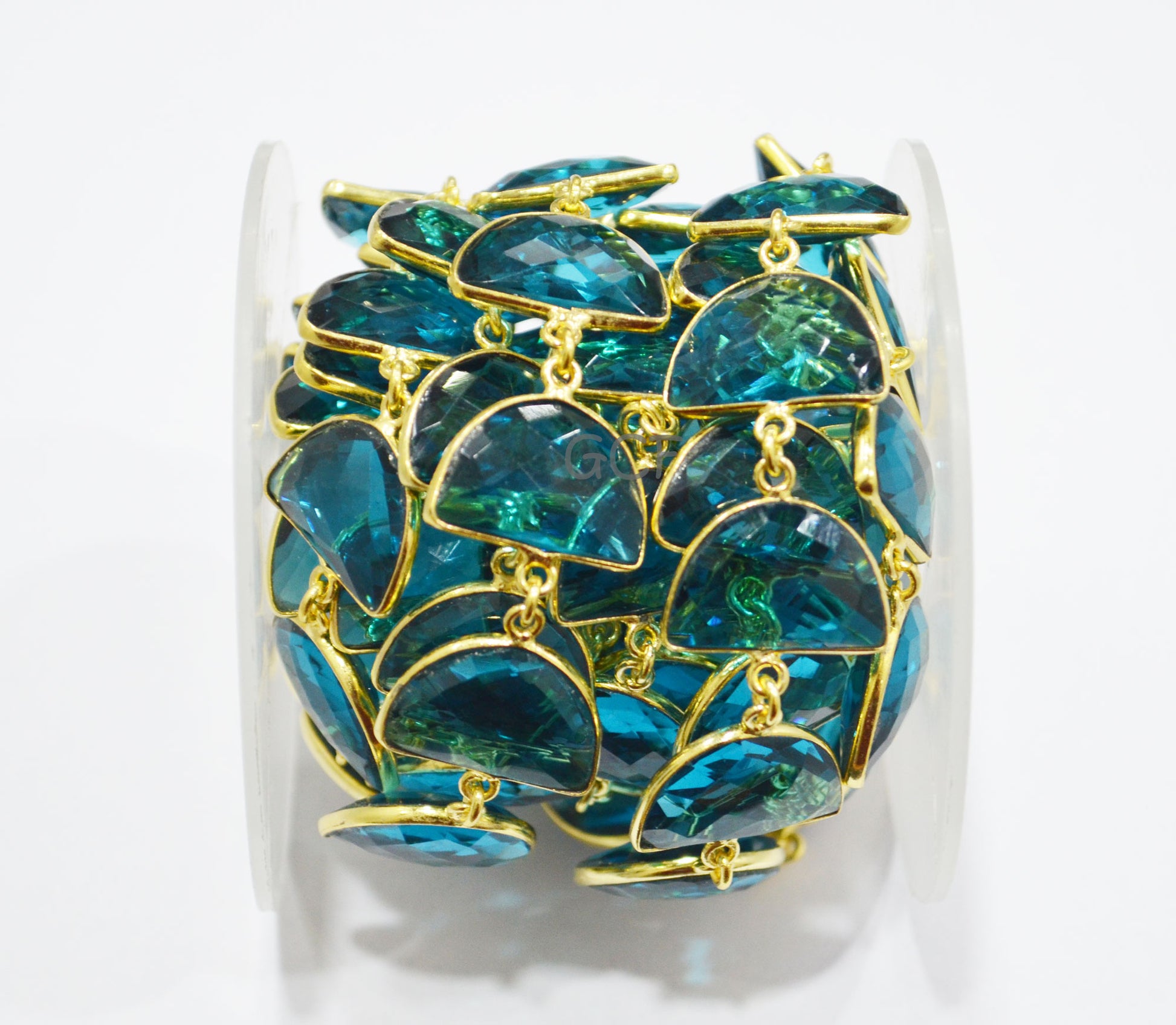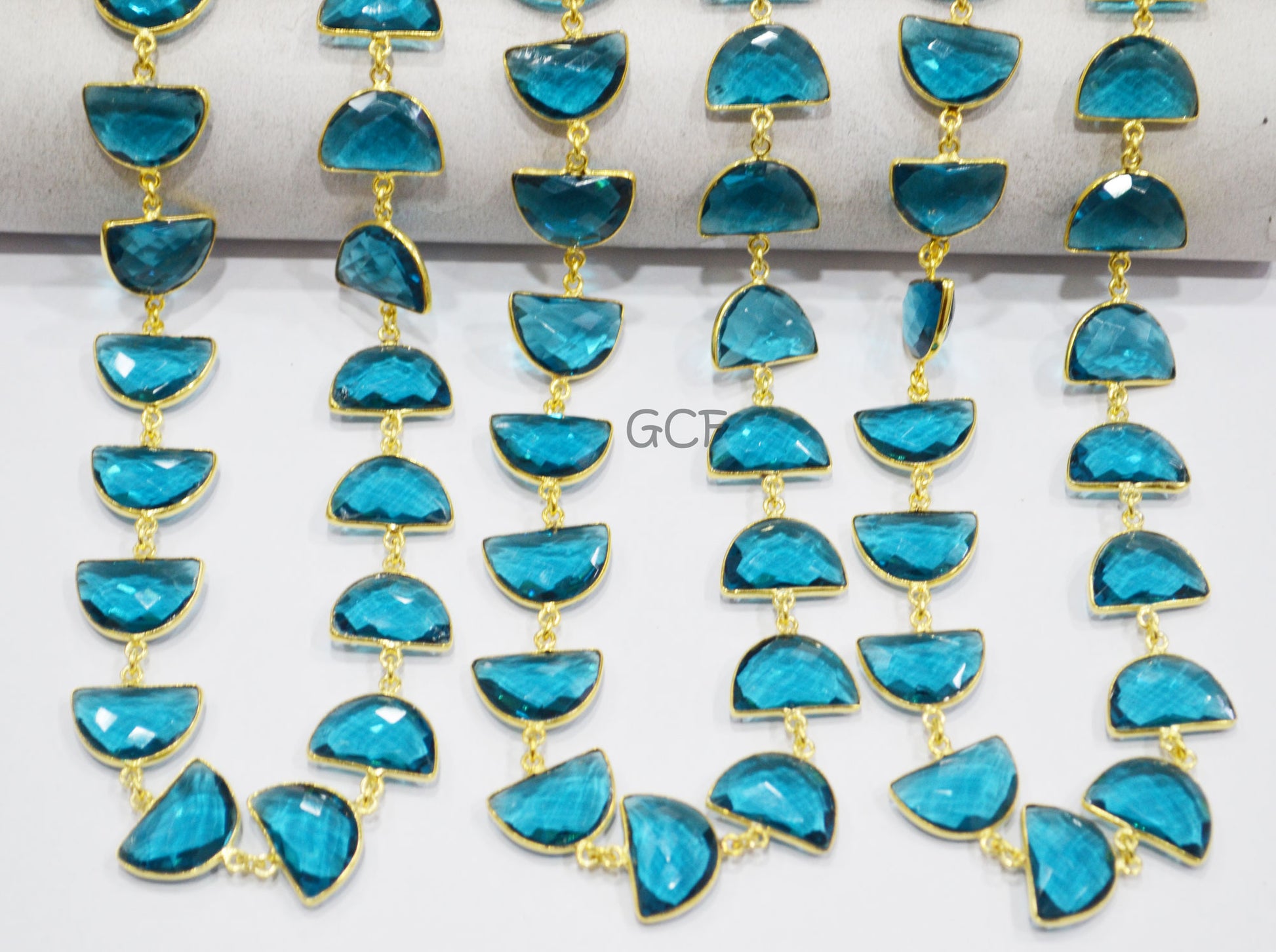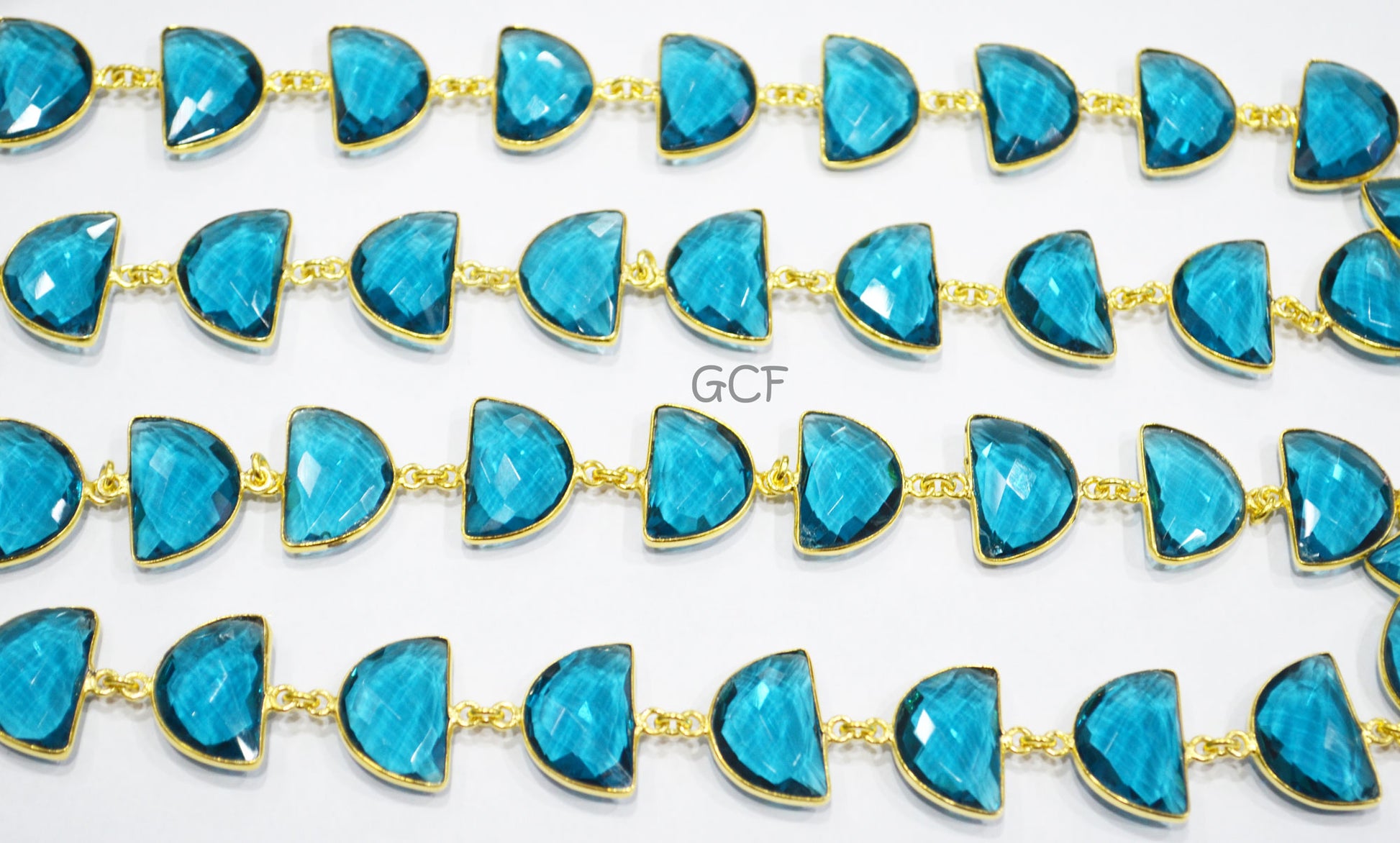 Teal Green Hydro Quartz Faceted Half Moon Shape Connector Chain , Teal Green Hydro Quartz Bezel Link Chain , 13x19 mm , RB-7087