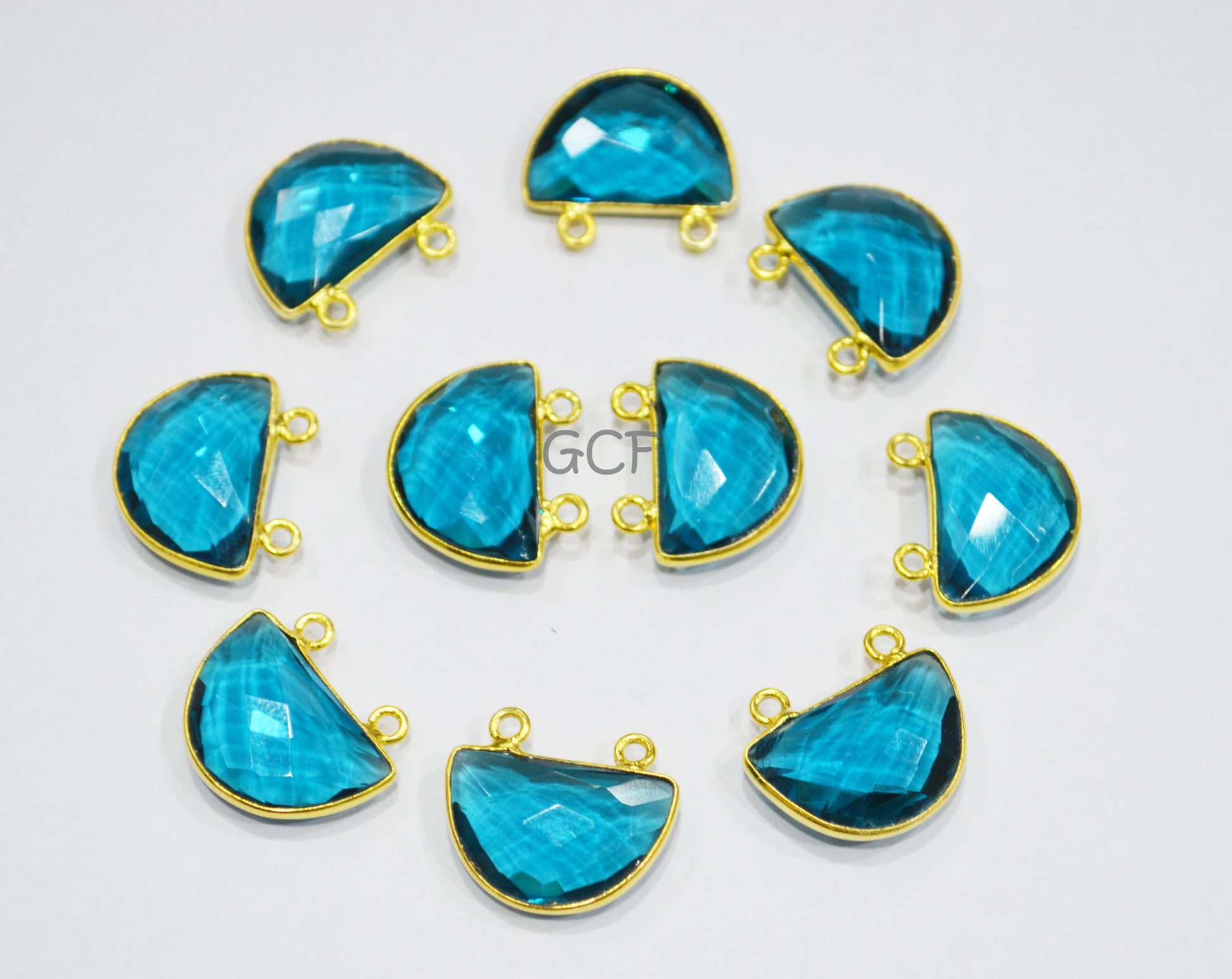 Teal Green Hydro Quartz Faceted Half Moon Shape Connector , Teal Green Hydro Glass Double Bail Connector , Sold By Piece , 13x19 mm ,RB-7095
