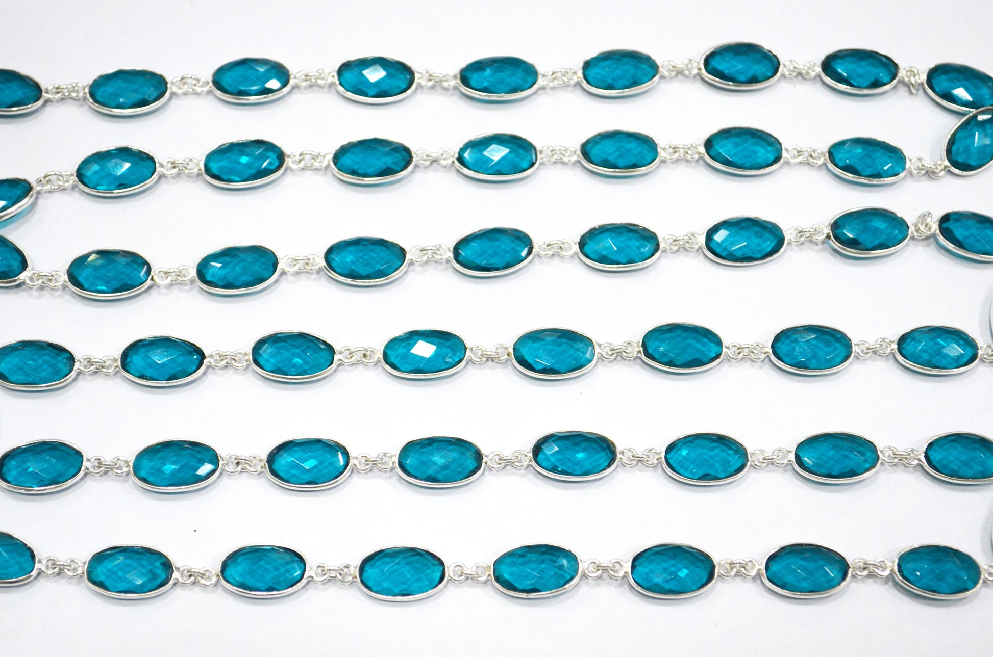 Teal Green Hydro Quartz Faceted Oval Shape Connector Chain , Teal Green Hydro Quartz Bezel Link Chain , 9x13 mm , RB-5705