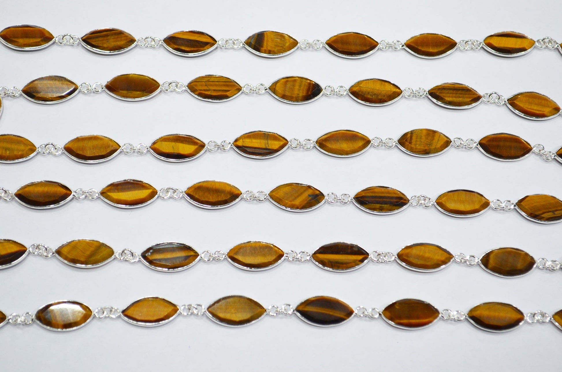 Tiger Eye Faceted Marquise Shape Connector Chain , Tiger Eye Bezel Link Chain , 10x18 mm , RB-7363