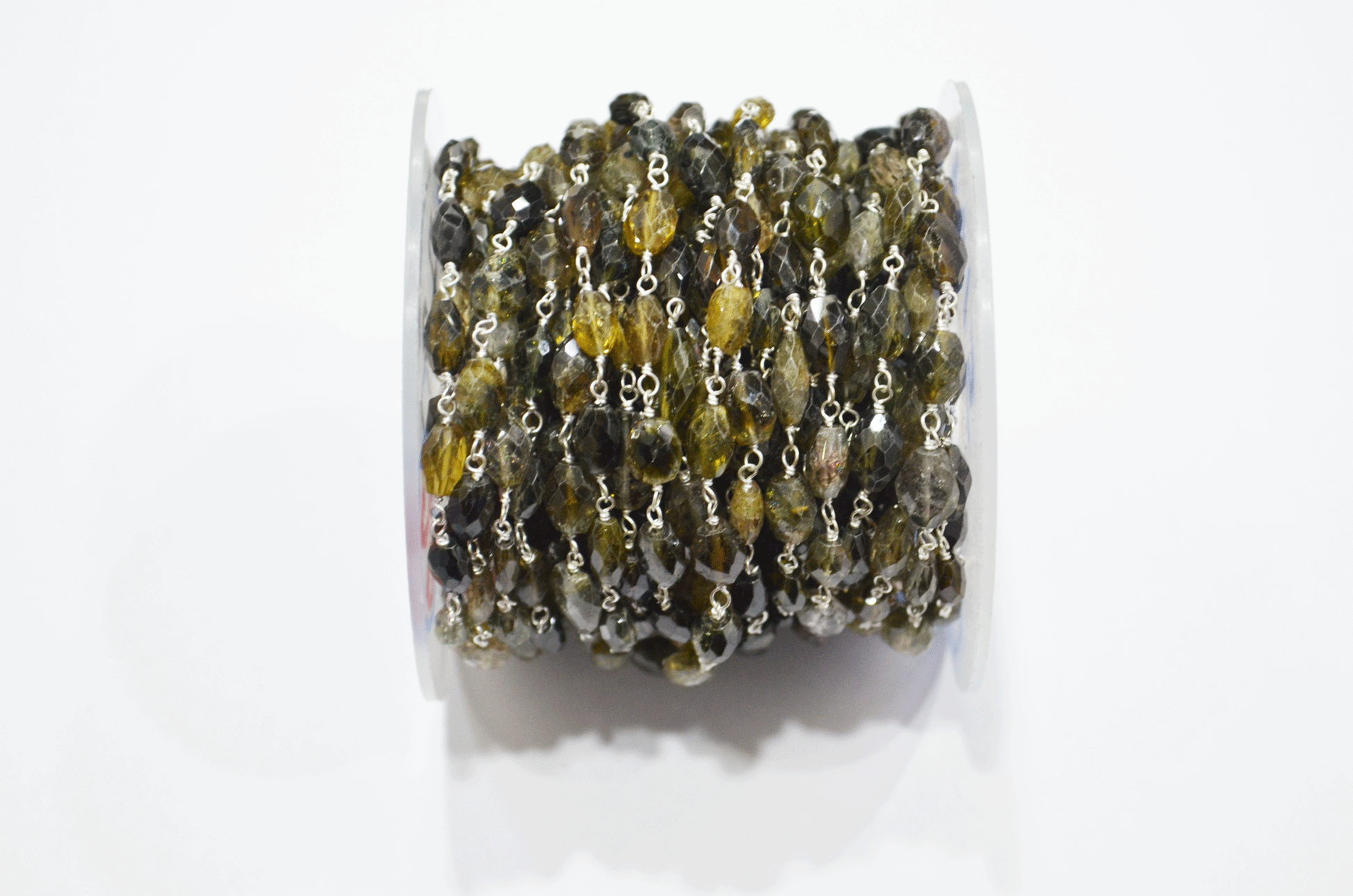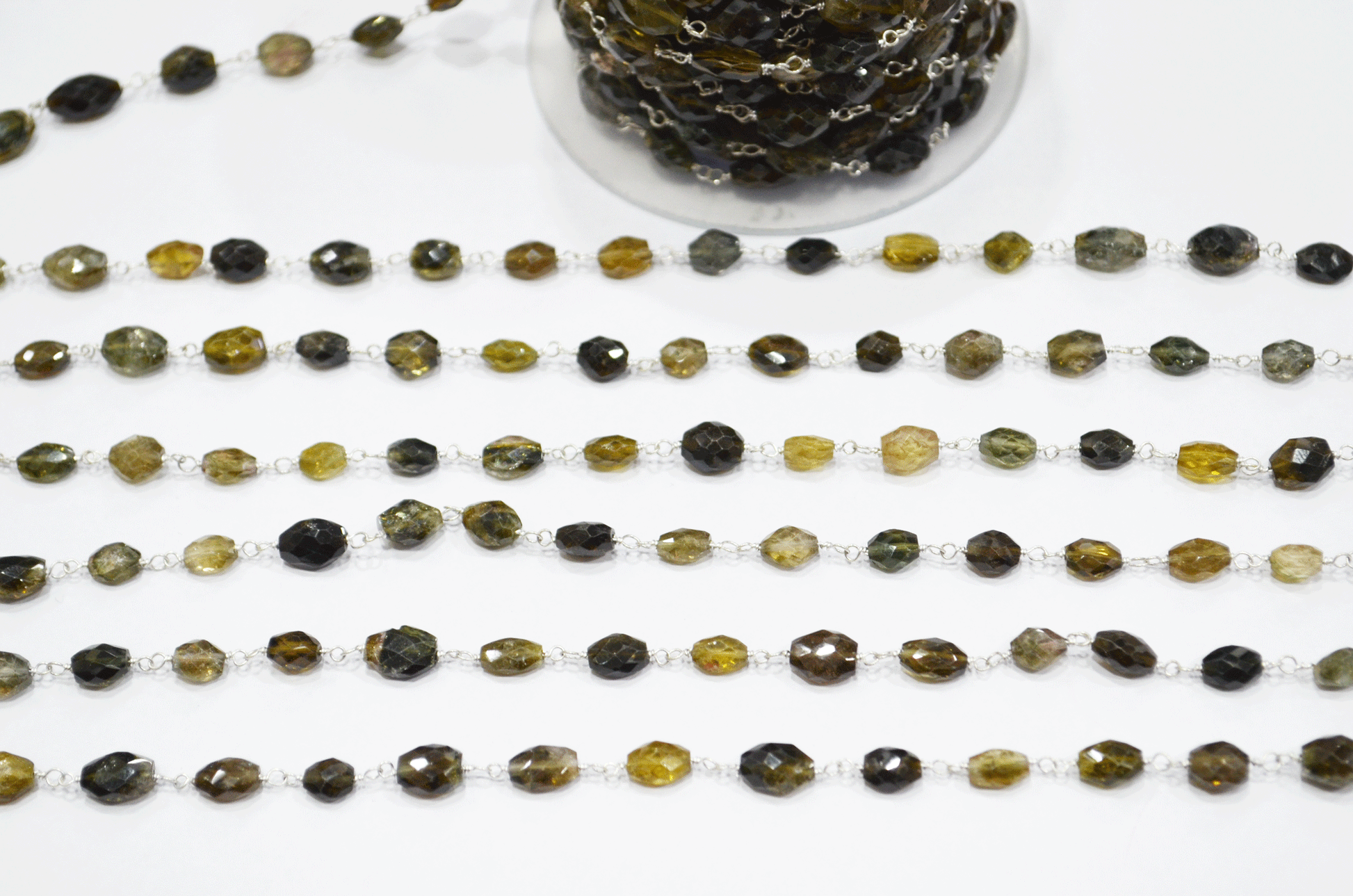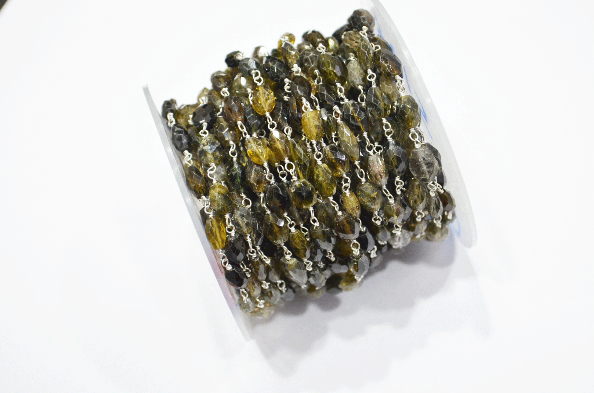 Tourmaline Faceted Oval Shape Rosary Beaded Chain , Tourmaline Wire Wrapped Chain , 6 - 10 mm , RB-5106