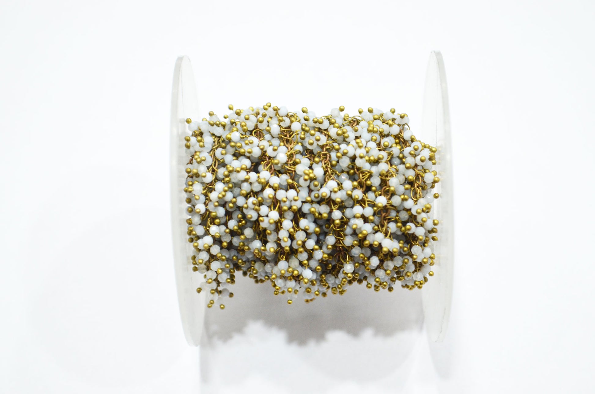 Turkey Chalcedony Faceted Round Shape Grape Chain , Turkey Chalcedony Angoori Cluster Wire Wrapped Chain , 2 mm , RB-5922