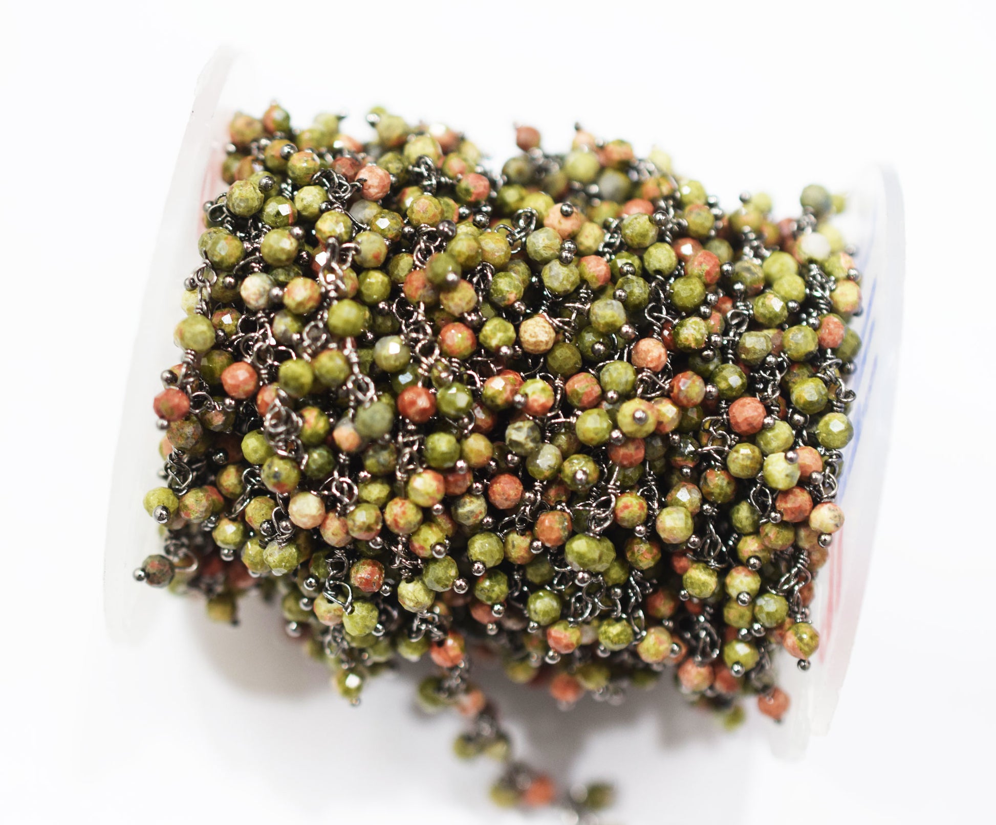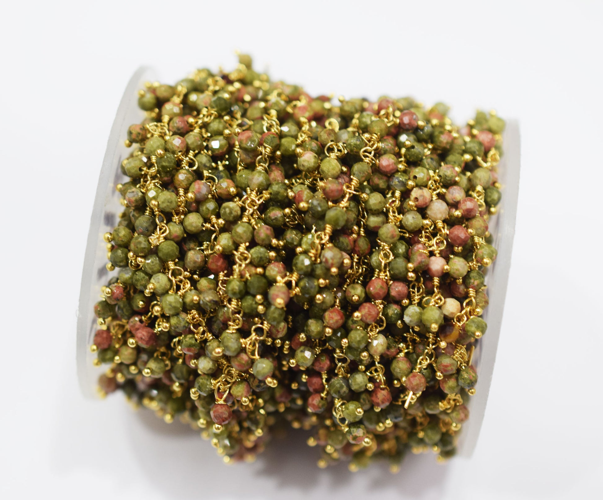 Unakite Faceted Round Shape Angoori Cluster Chain , 3 mm , RB-6687