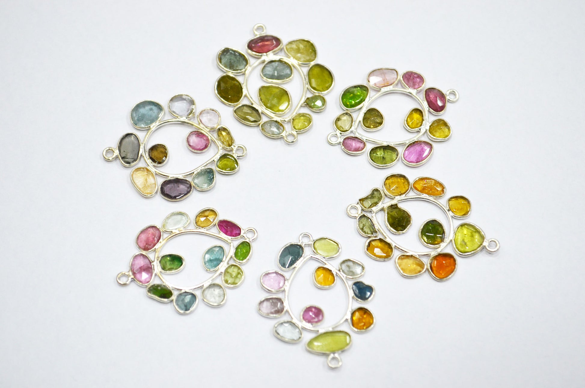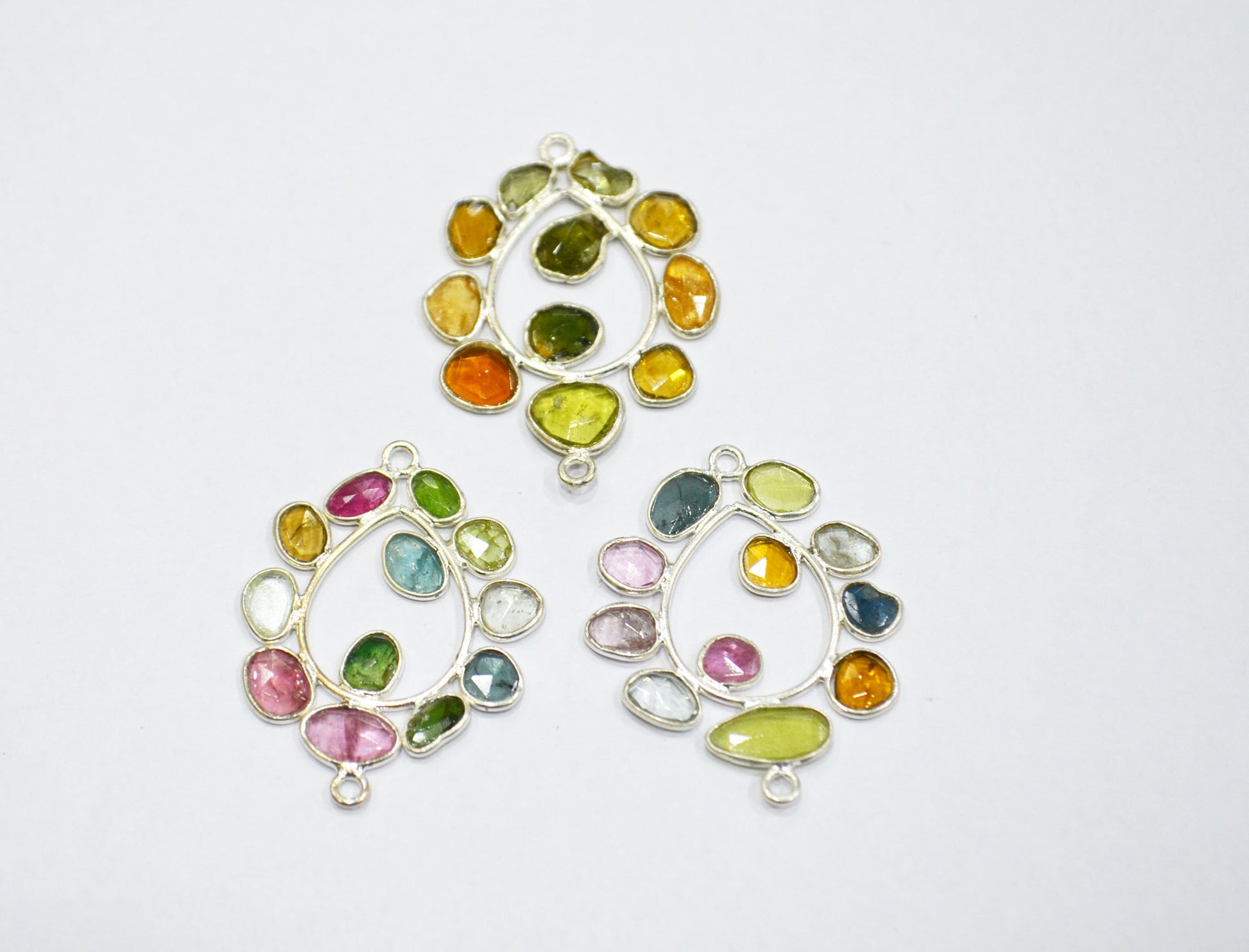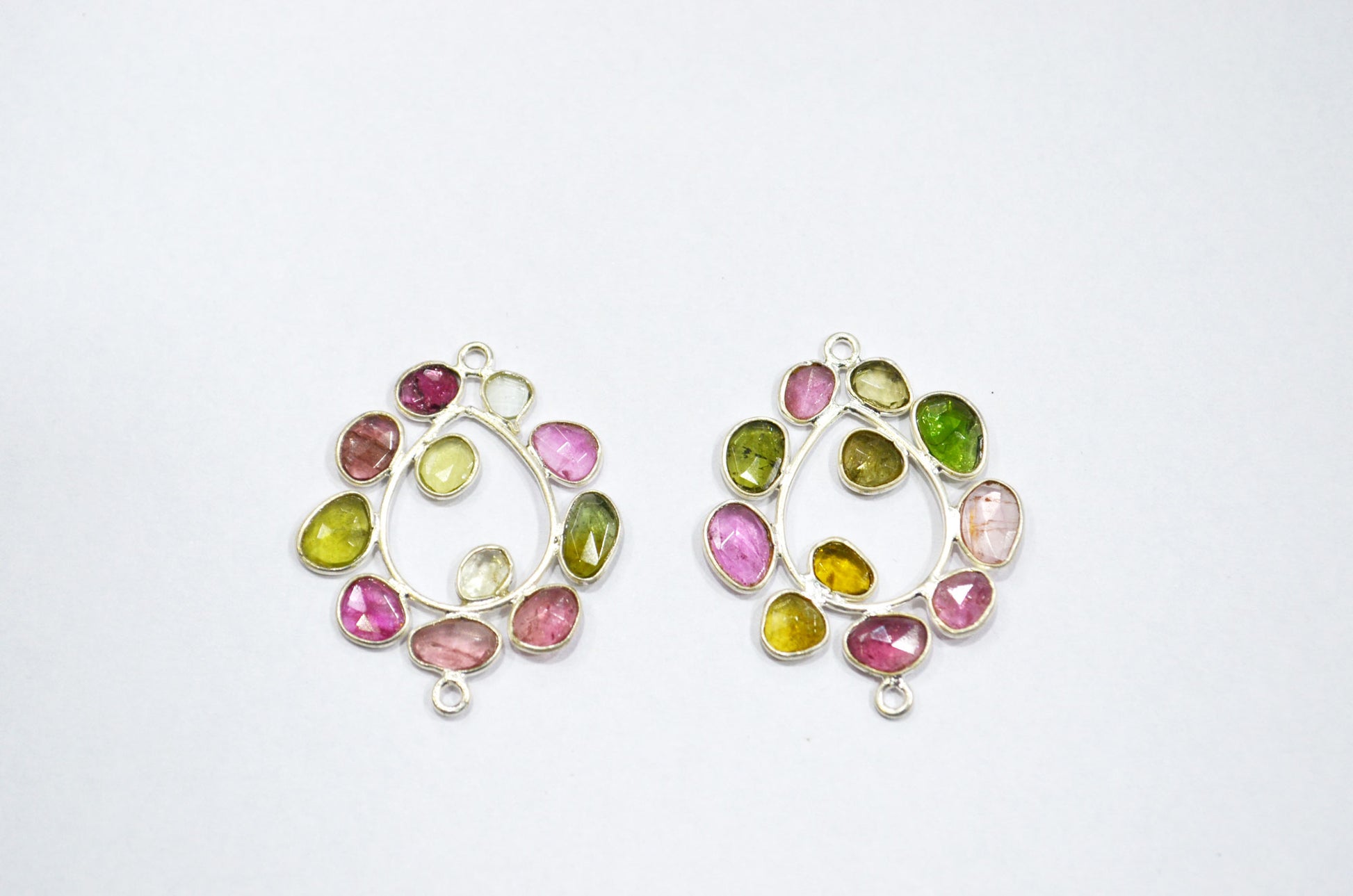 Watermelon Tourmaline Sterling Silver Pear Shape Connector , Sold By Piece , 3 - 3.50 cm , RB-6059