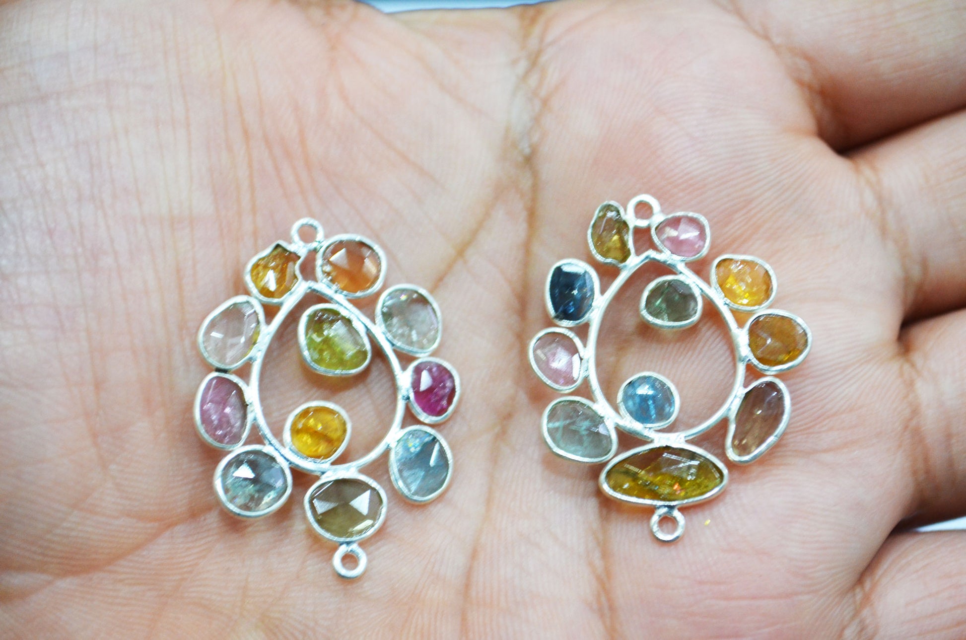 Watermelon Tourmaline Sterling Silver Pear Shape Connector , Natural Watermelon Tourmaline Faceted Double Bail Connector , Sold By Piece , 3 - 3.50 cm , RB-6059