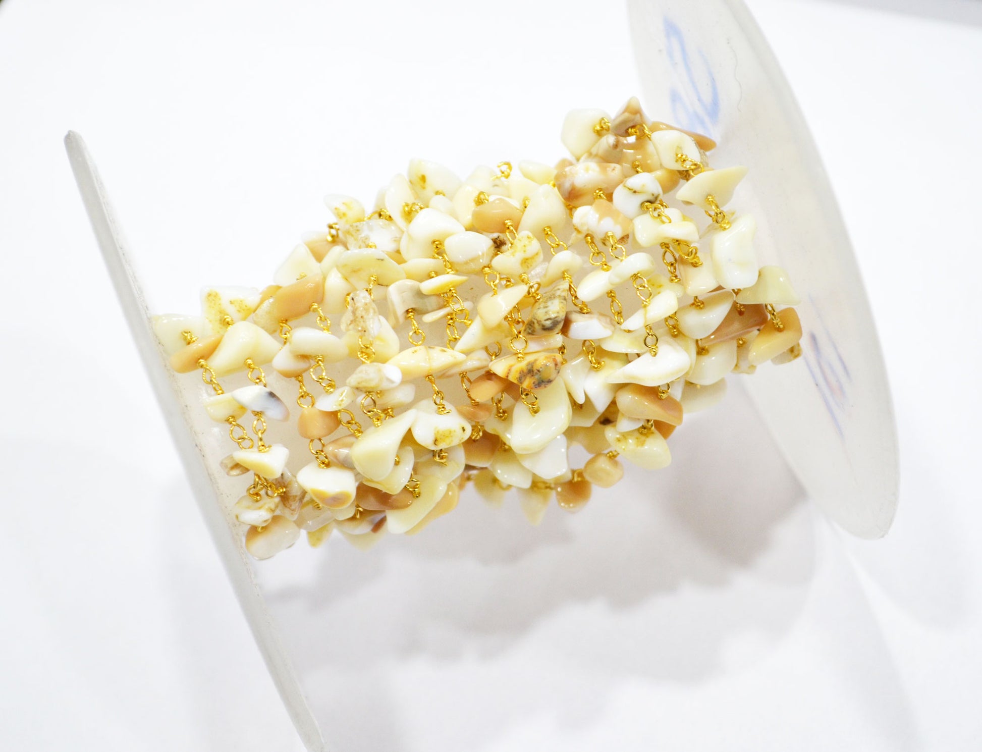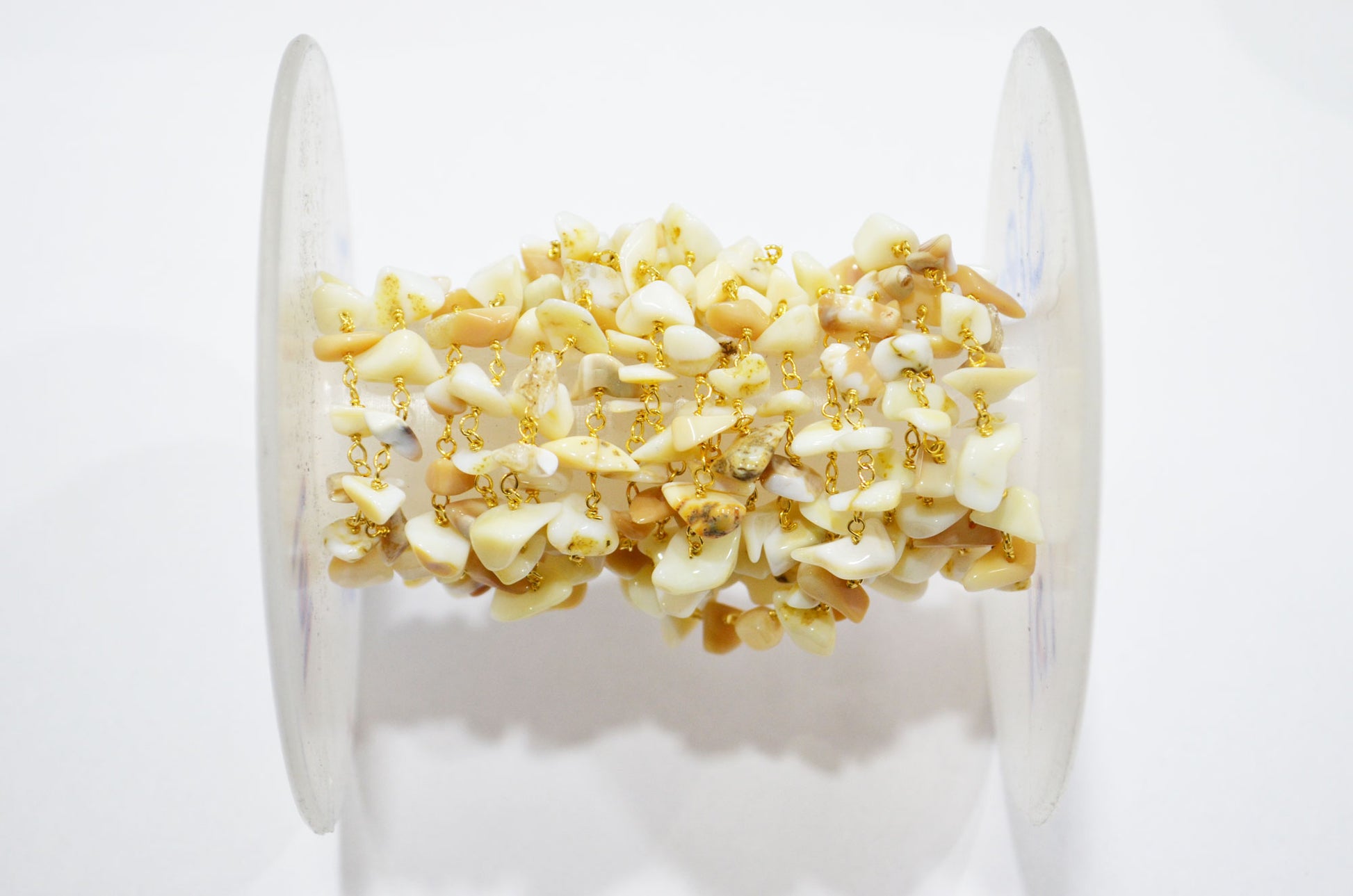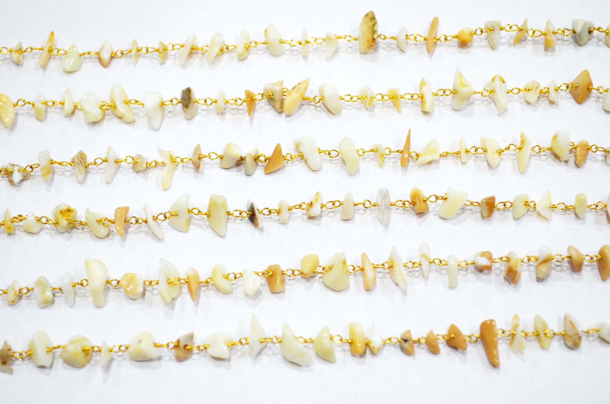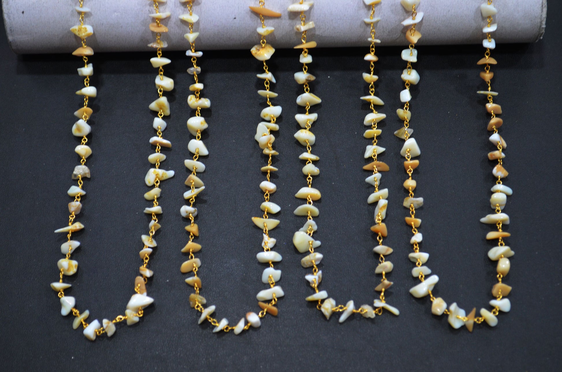 White African Opal Smooth Irregular Flat Chips Shape Rosary Chain , Organic Polished Rough Nuggets Chips Wire Wrapped Chain , 2 - 5 mm , RB-5894