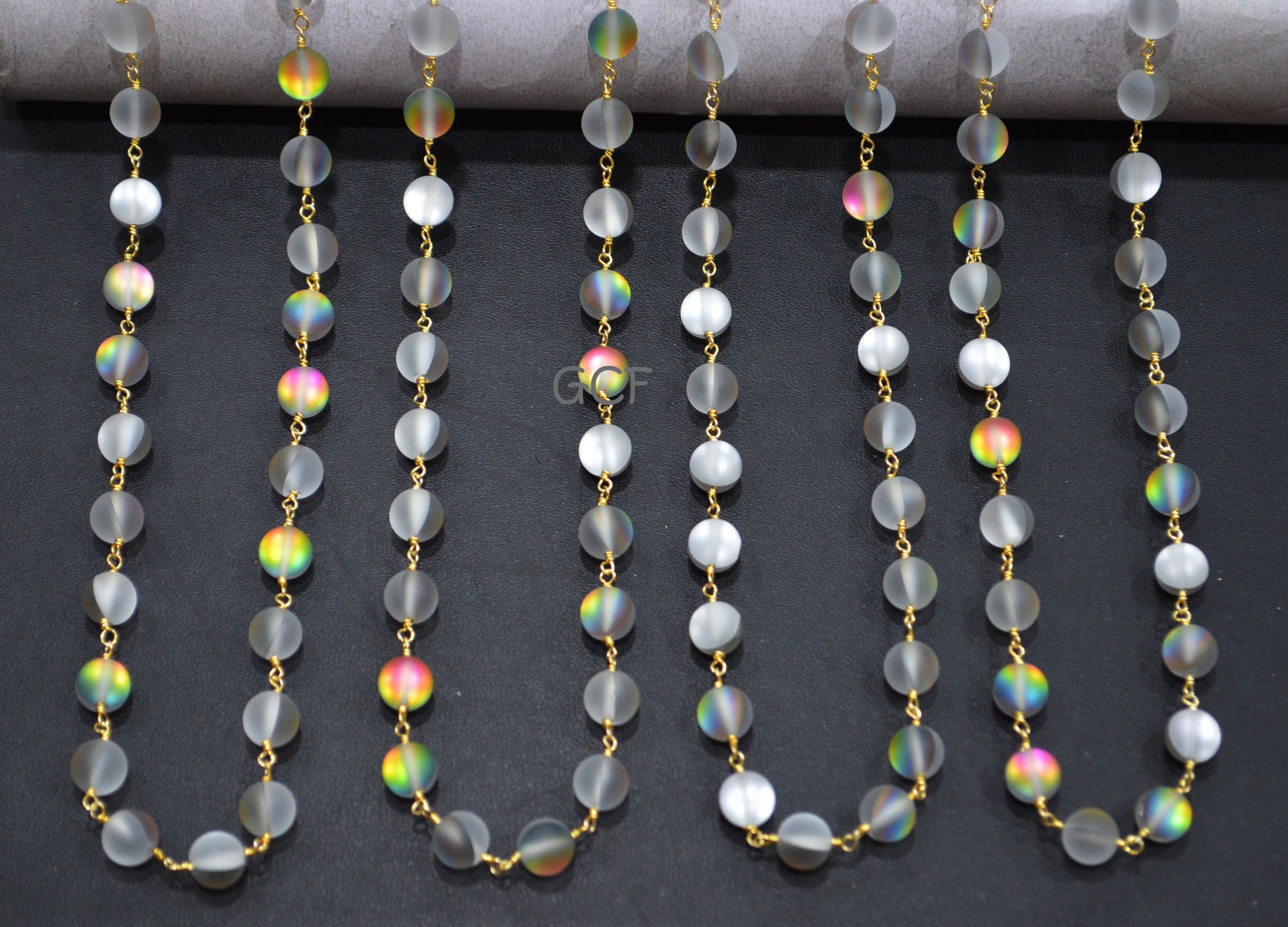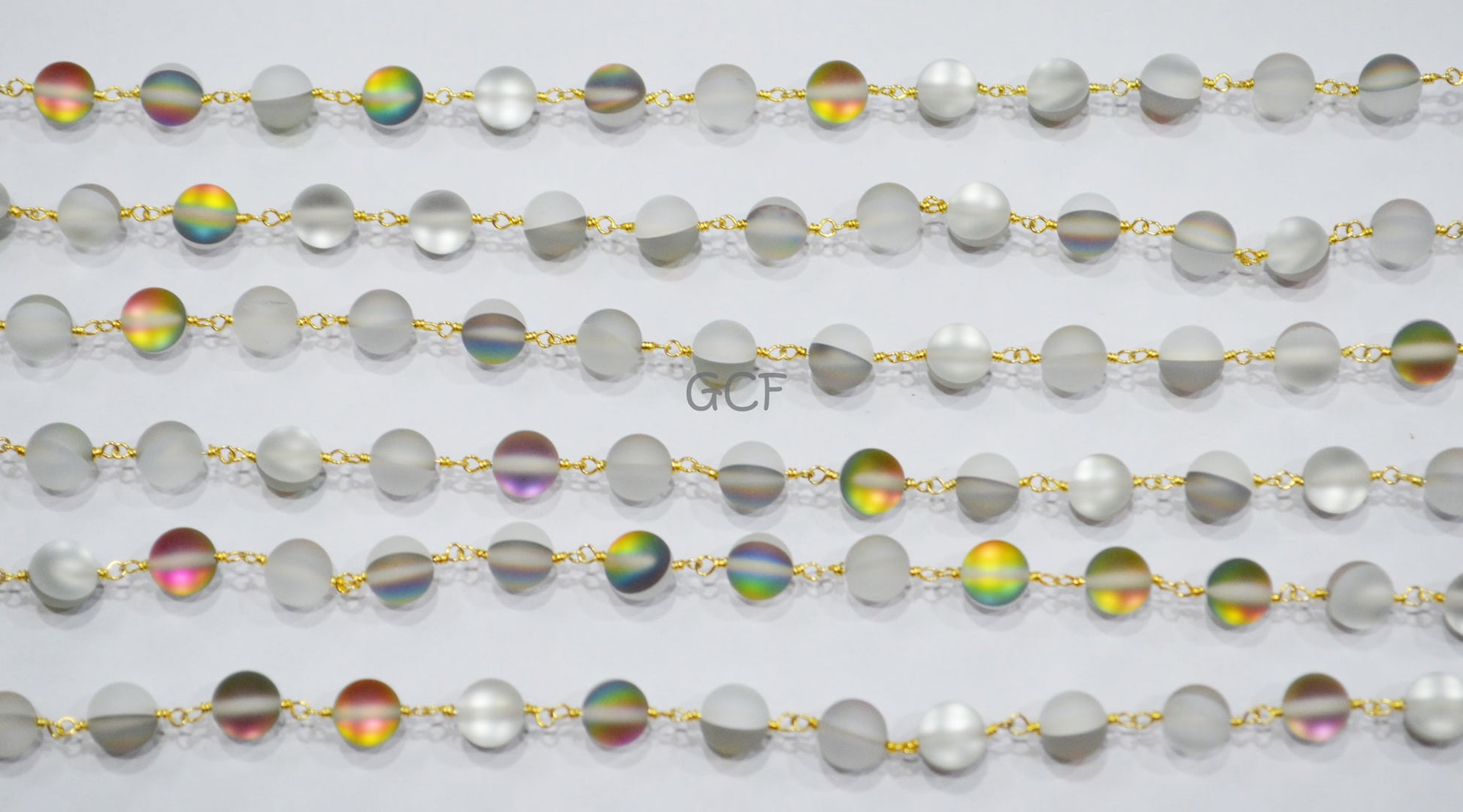 White And Grey Doublet Hydro Glass Smooth Rosary Chain , White And Grey Doublet Hydro Glass Round Shape Wire Wrapped Chain , 8 mm ,RB-7109
