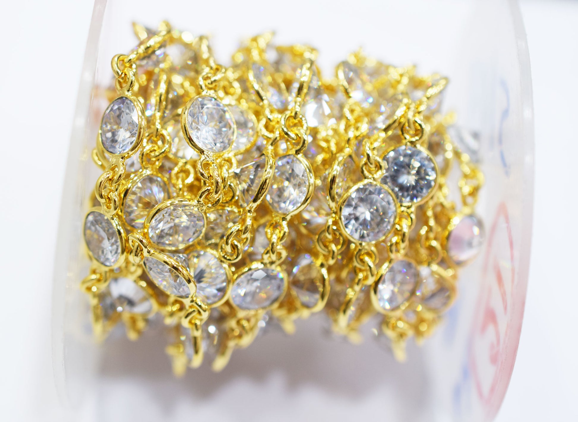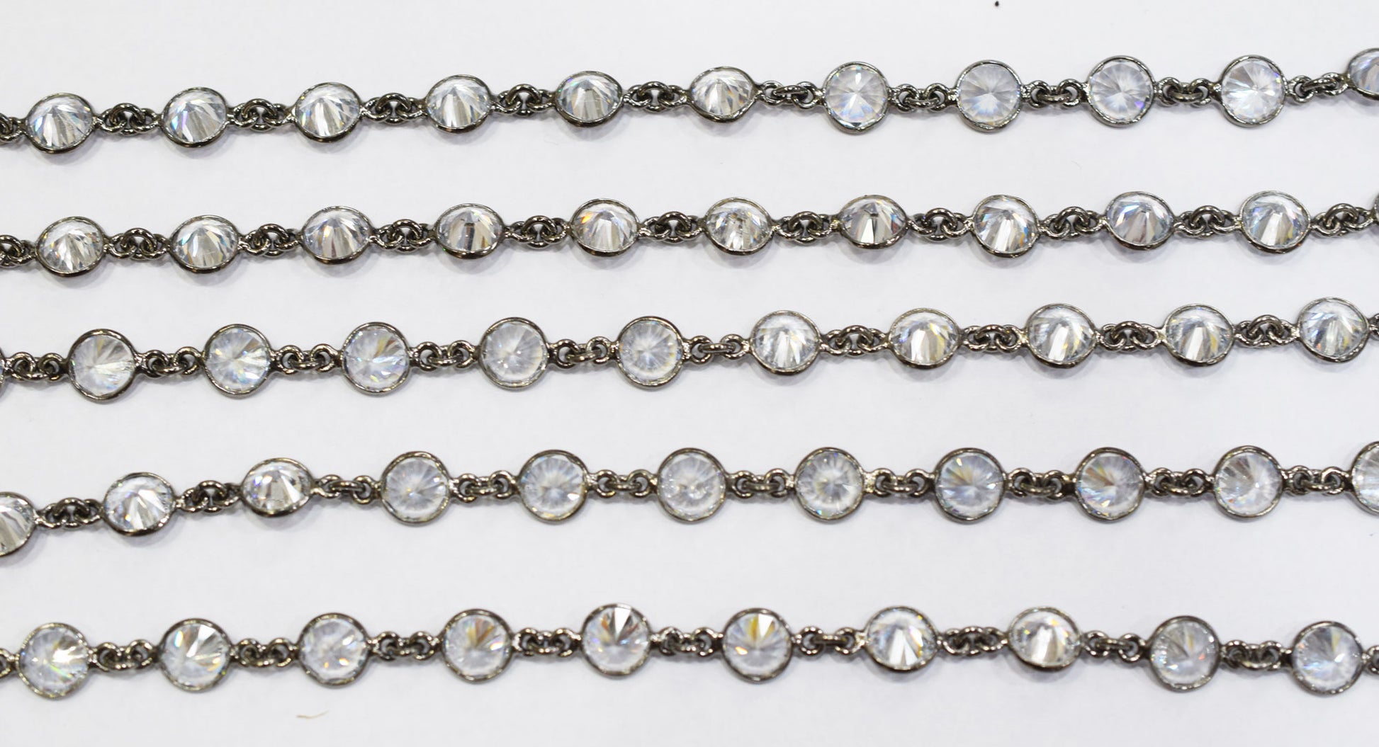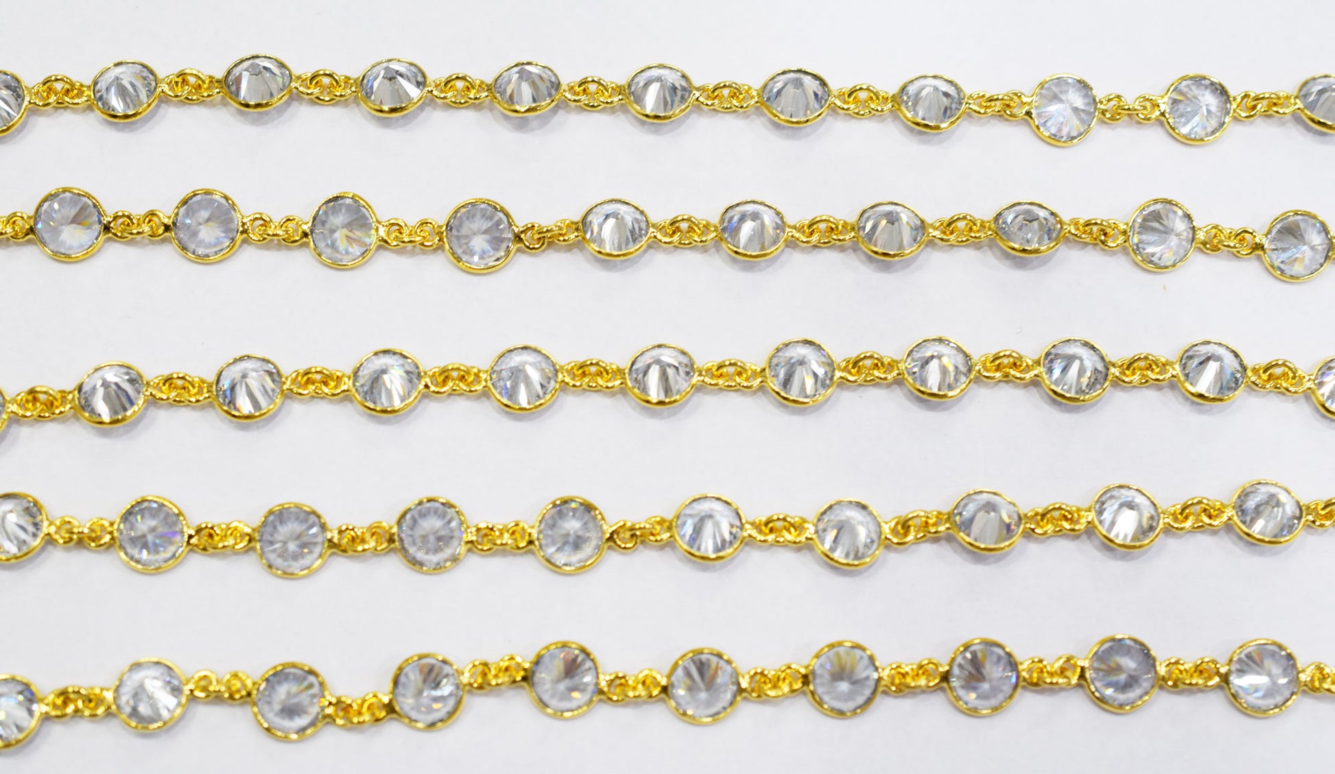 White Cubic Zirconia Diamond Cut Coin Shape Connector Chain , White Cubic Zirconia CZ Tiff Bezel Link Chain , 8.50 mm , RB-6657