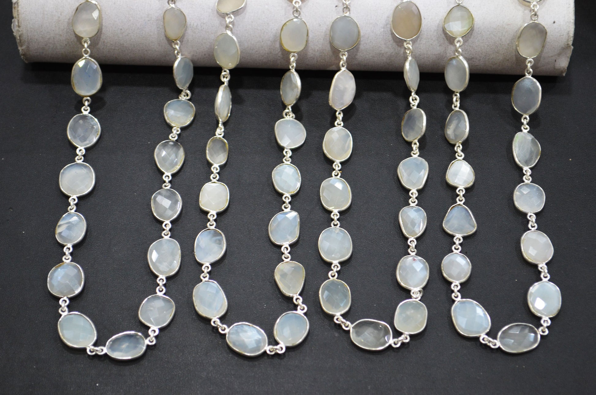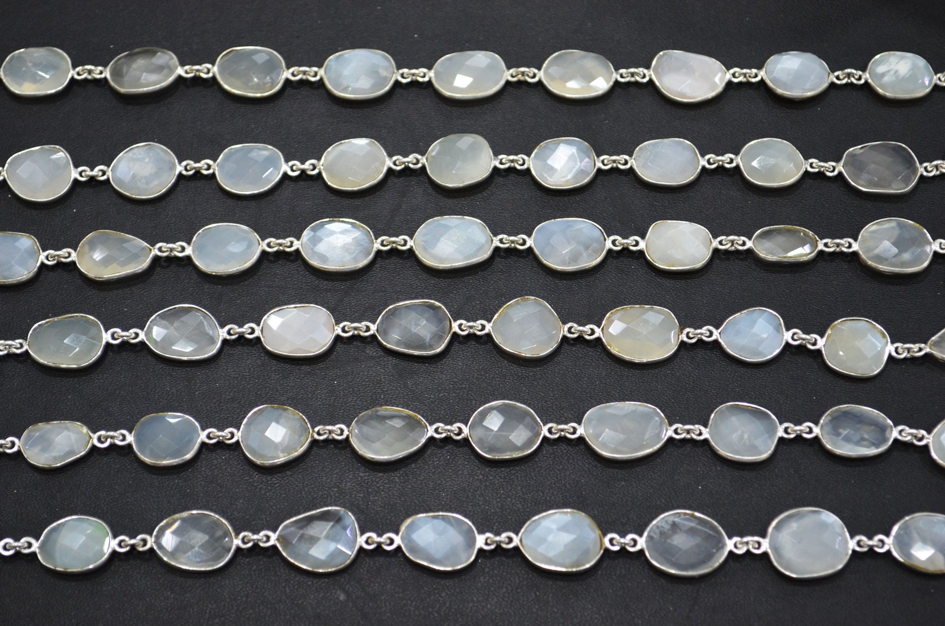 White Moonstone Faceted Free Form Shape Connector Chain , White Moonstone Slice Shape Bezel Link Chain , 11 - 14 mm , RB-5351