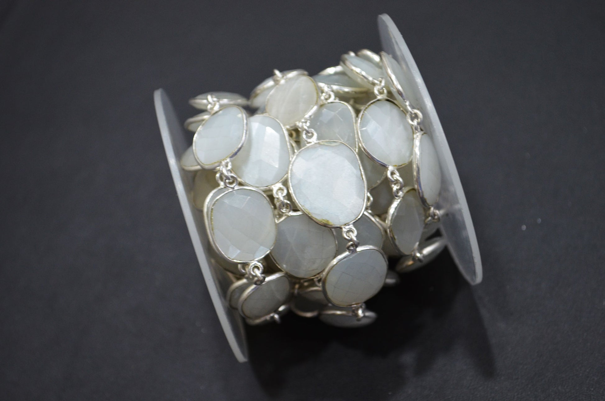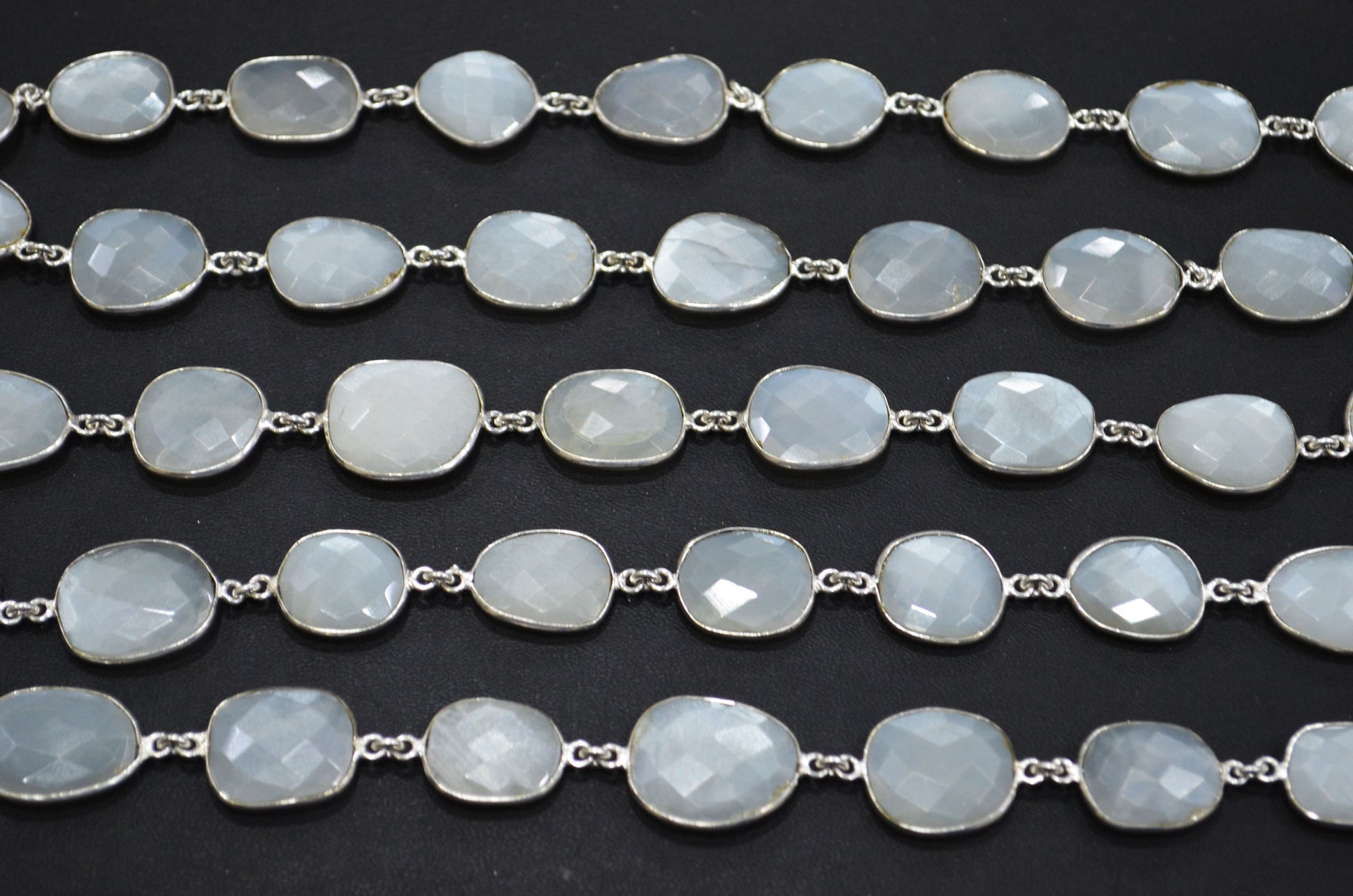 White Moonstone Faceted Free Form Shape Connector Chain , White Moonstone Slice Shape Bezel Link Chain , 13 - 17 mm , RB-5350