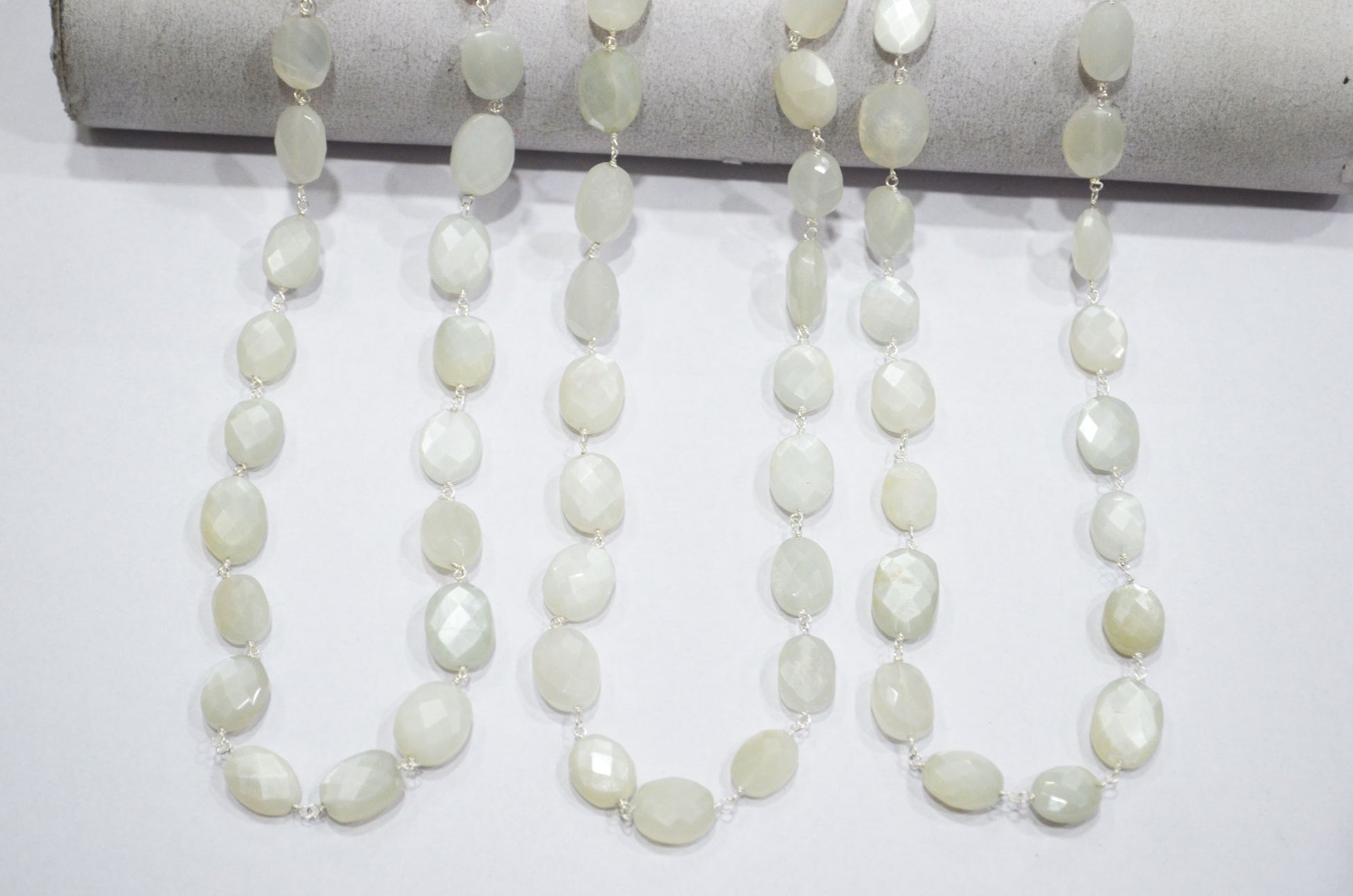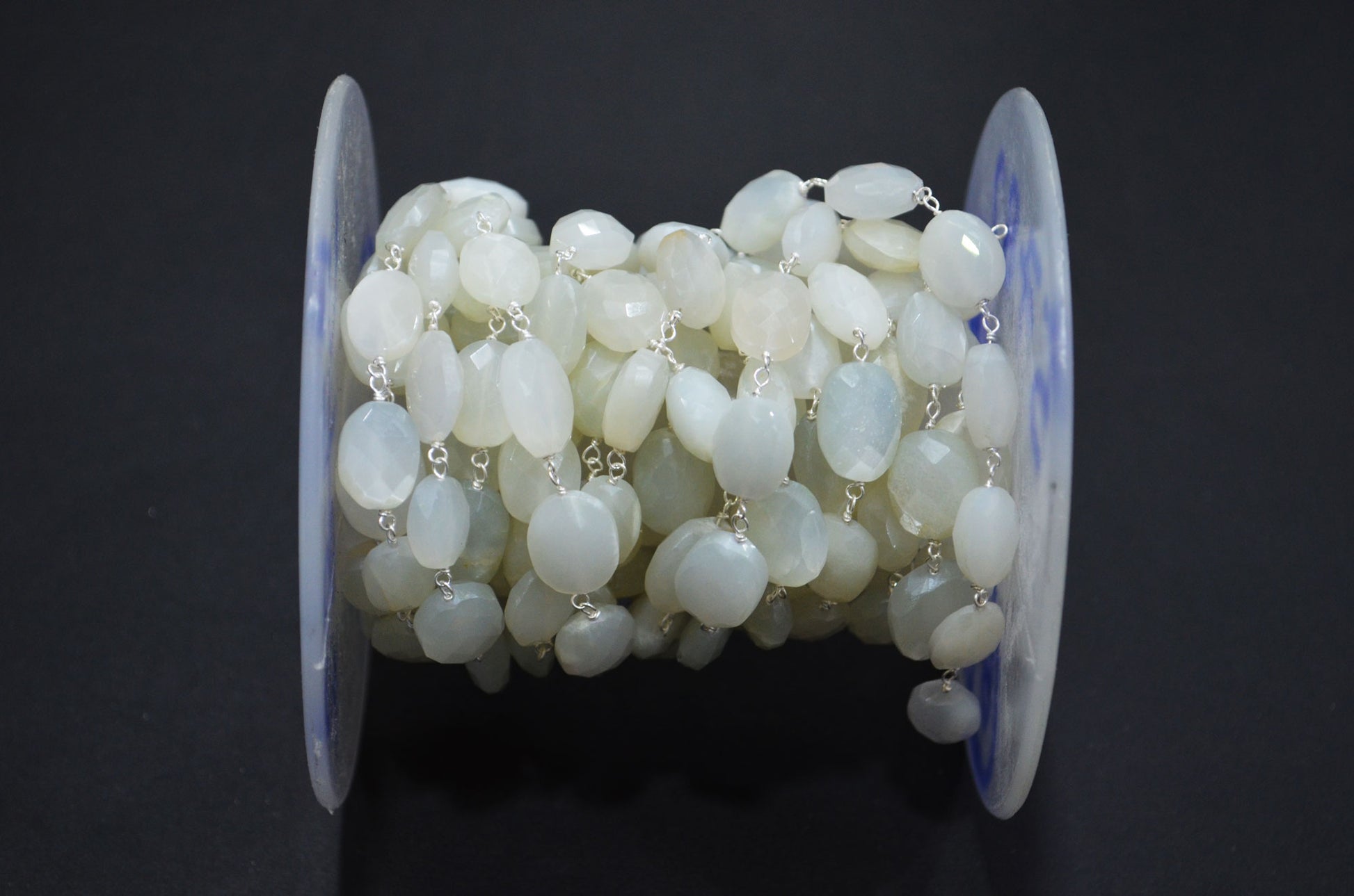 White Moonstone Faceted Oval Shape Rosary Beaded Chain , White Moonstone Wire Wrapped Chain , 9 - 13 mm , RB-5782A
