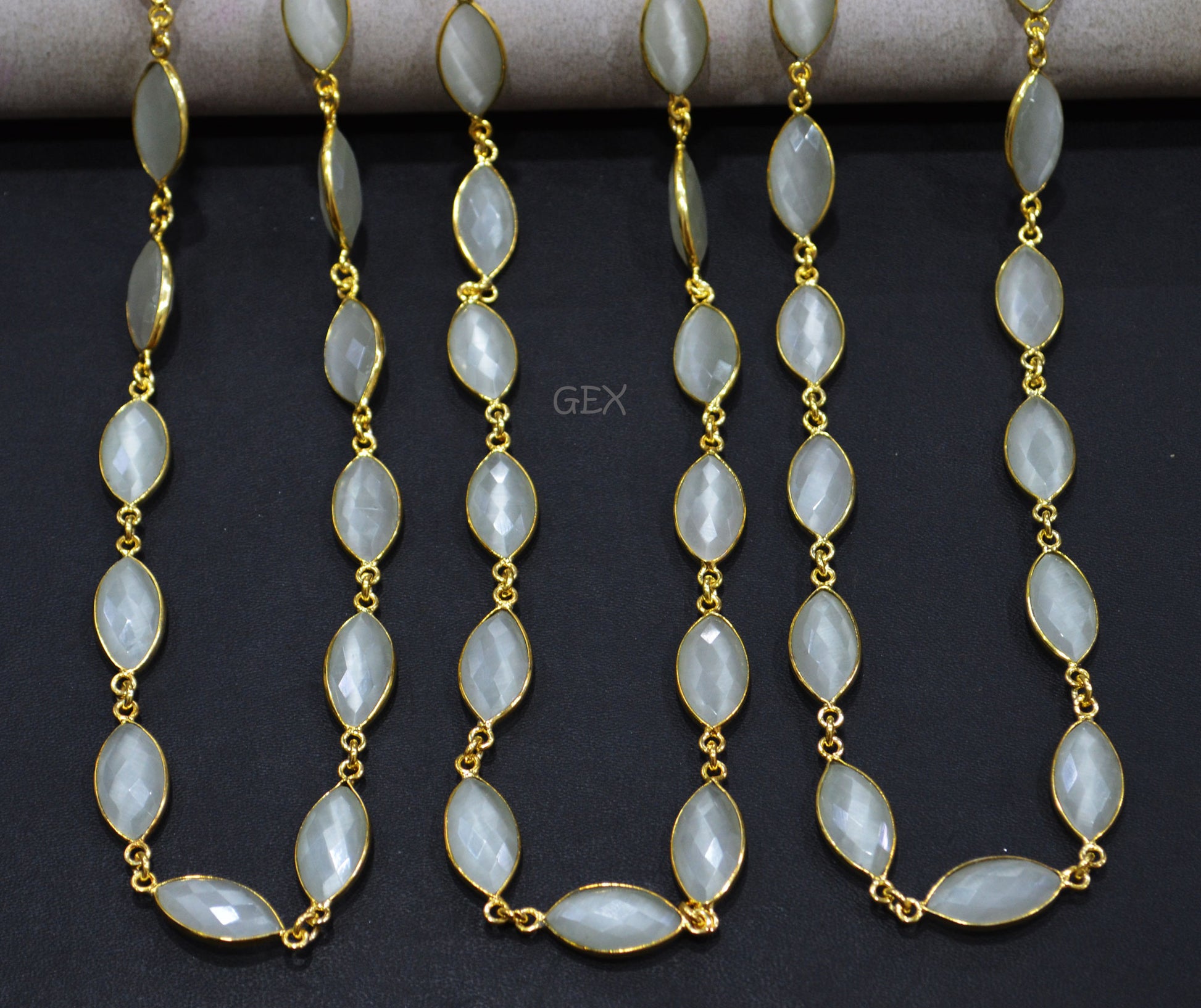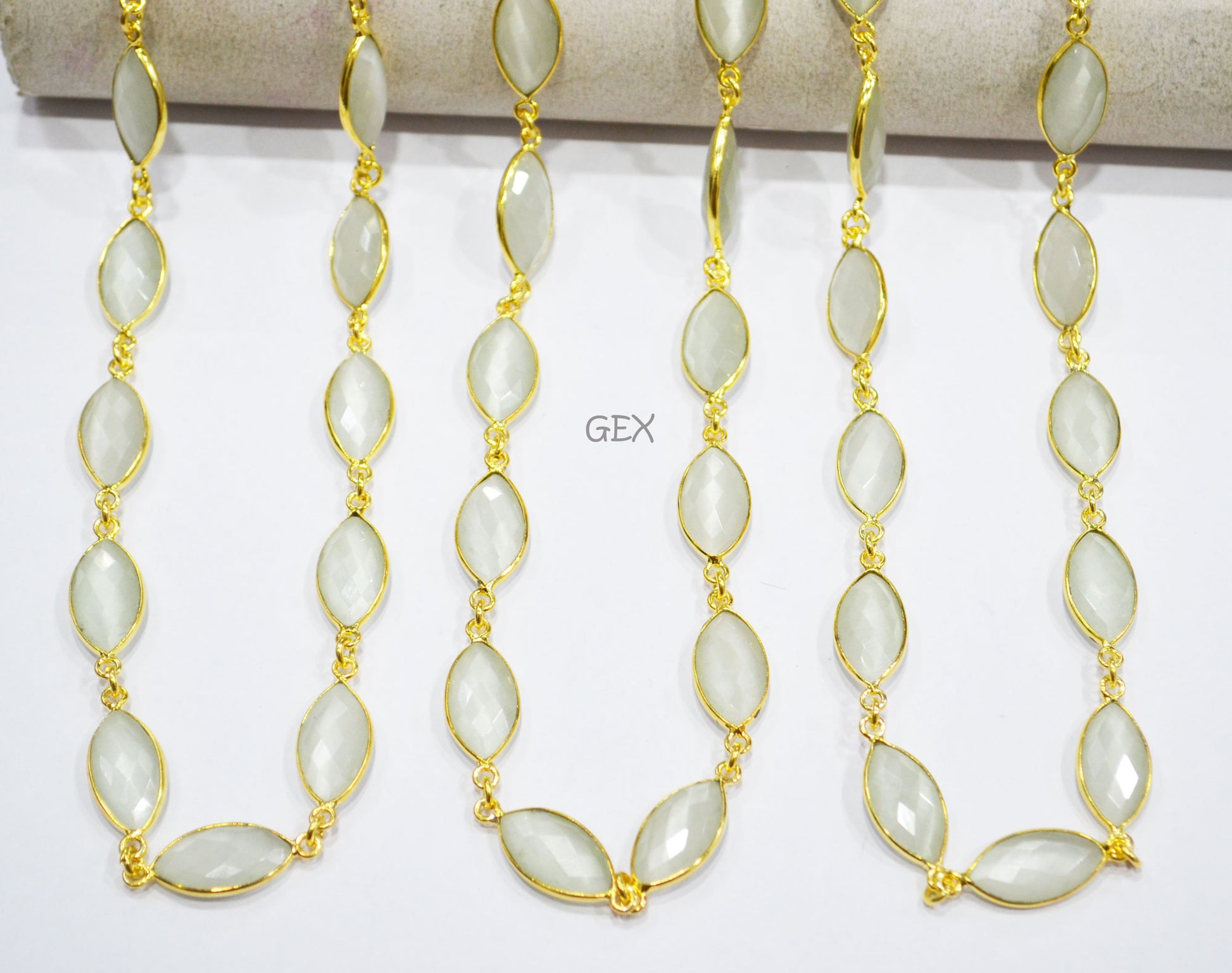 White Moonstone Hydro Glass Faceted Marquise Shape Connector Chain , White Moonstone Hydro Glass Marquise Shape Bezel Link Chain , 10x15 mm , RB-7235