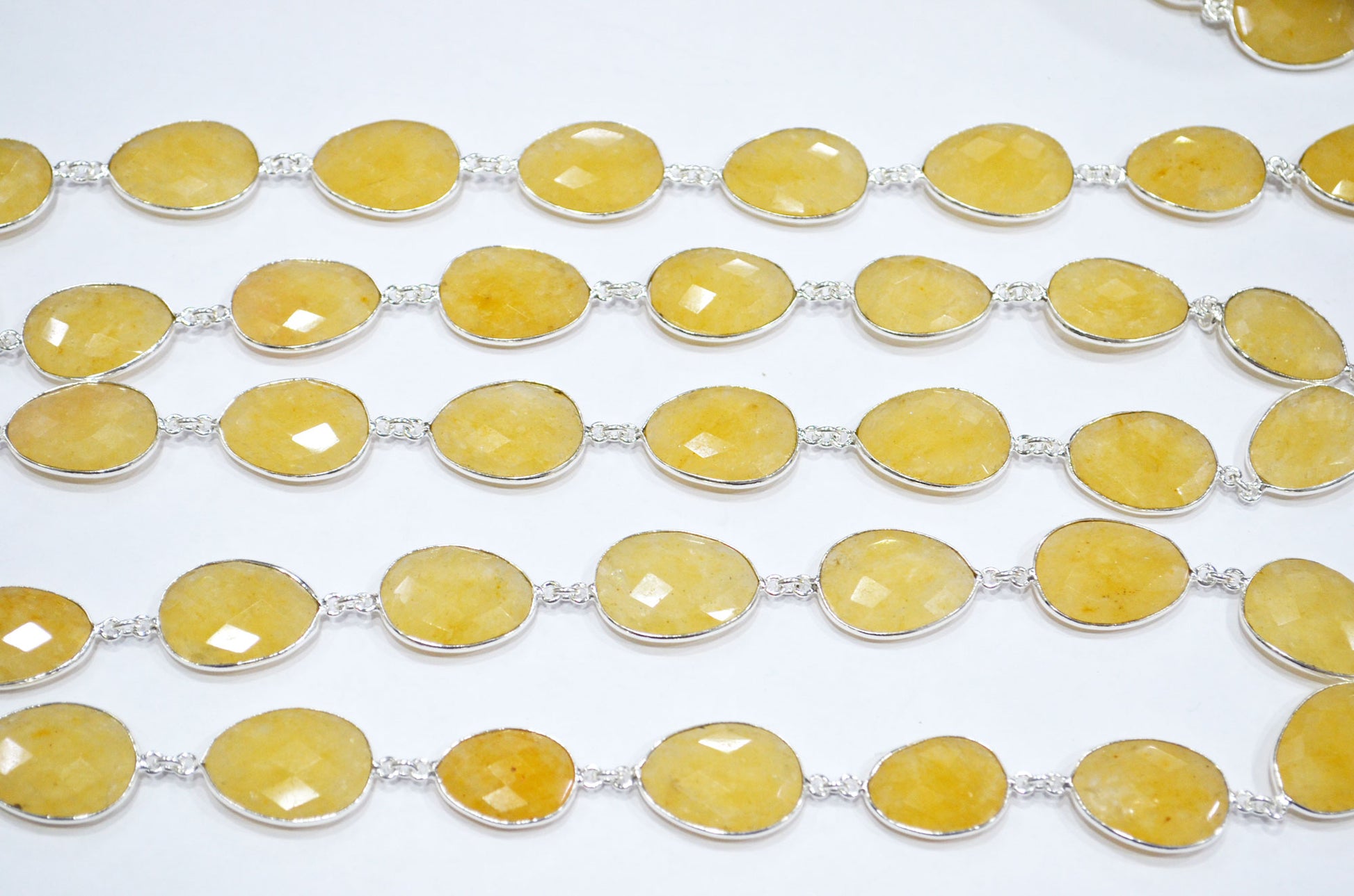 Yellow Aventurine Egg Shape Connector Chain , Yellow Aventurine Faceted Bezel Link Chain , 15x20 - 17x24 mm , RB-7381