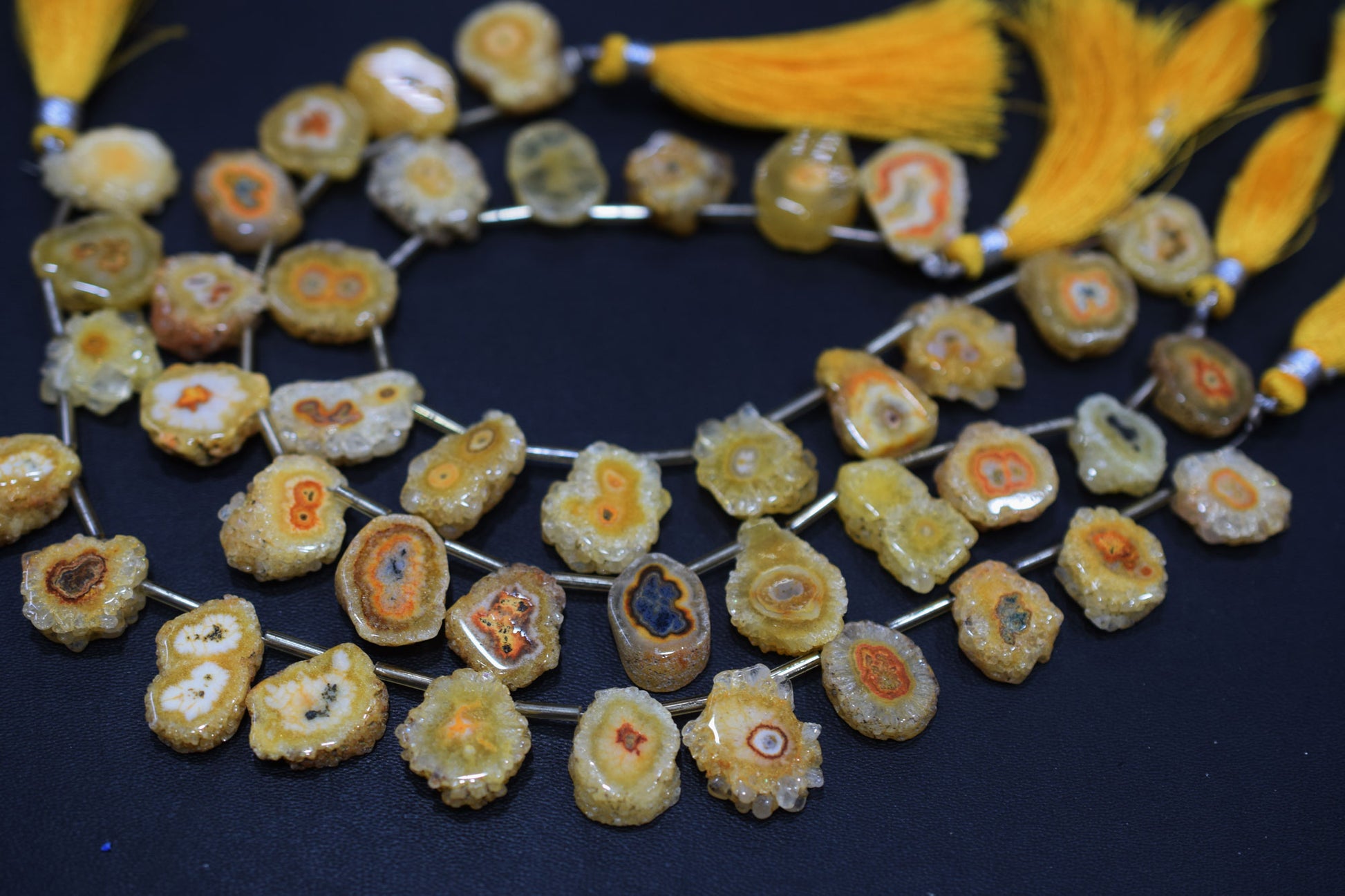 Yellow Color Druzy Nuggets Shape Briolettes , Yellow Color Druzy Smooth Beads , Sold By Strand , 10x15 - 16x20 mm , 8" , Β 20640
